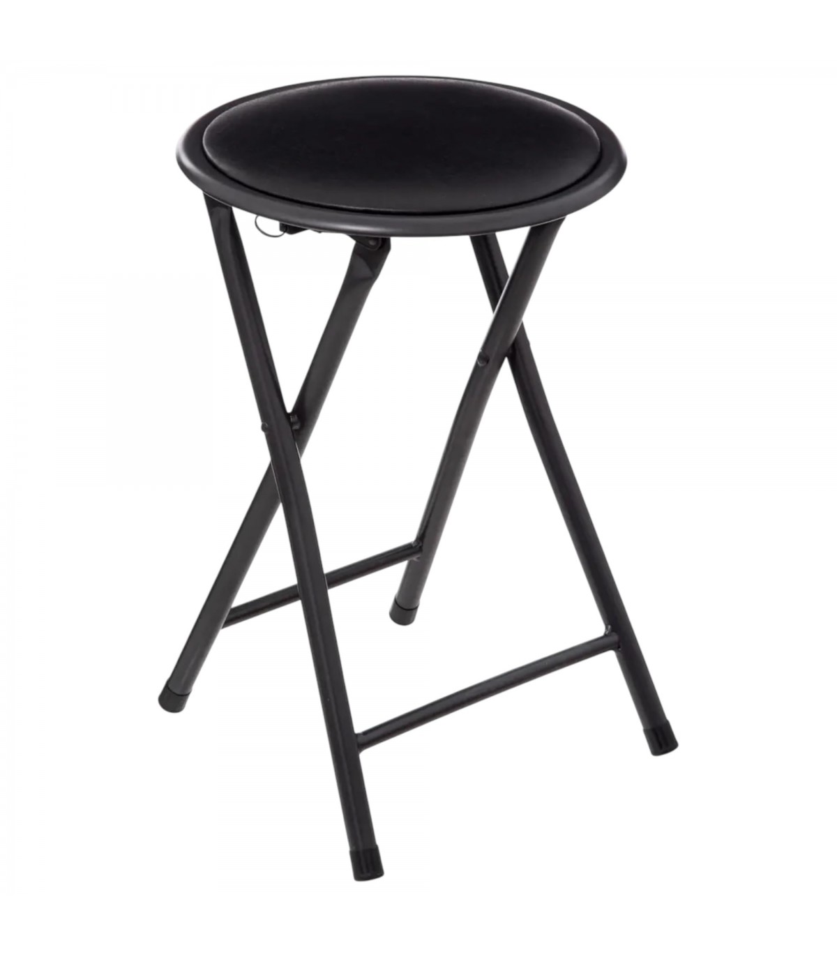TIENDA EURASIA® Taburete Plegable de Aluminio con Asiento Acolchado. Medidas: 40x30x30cm Ideal para Cocina, Comedor, Salón, Dormitorio (Negro)