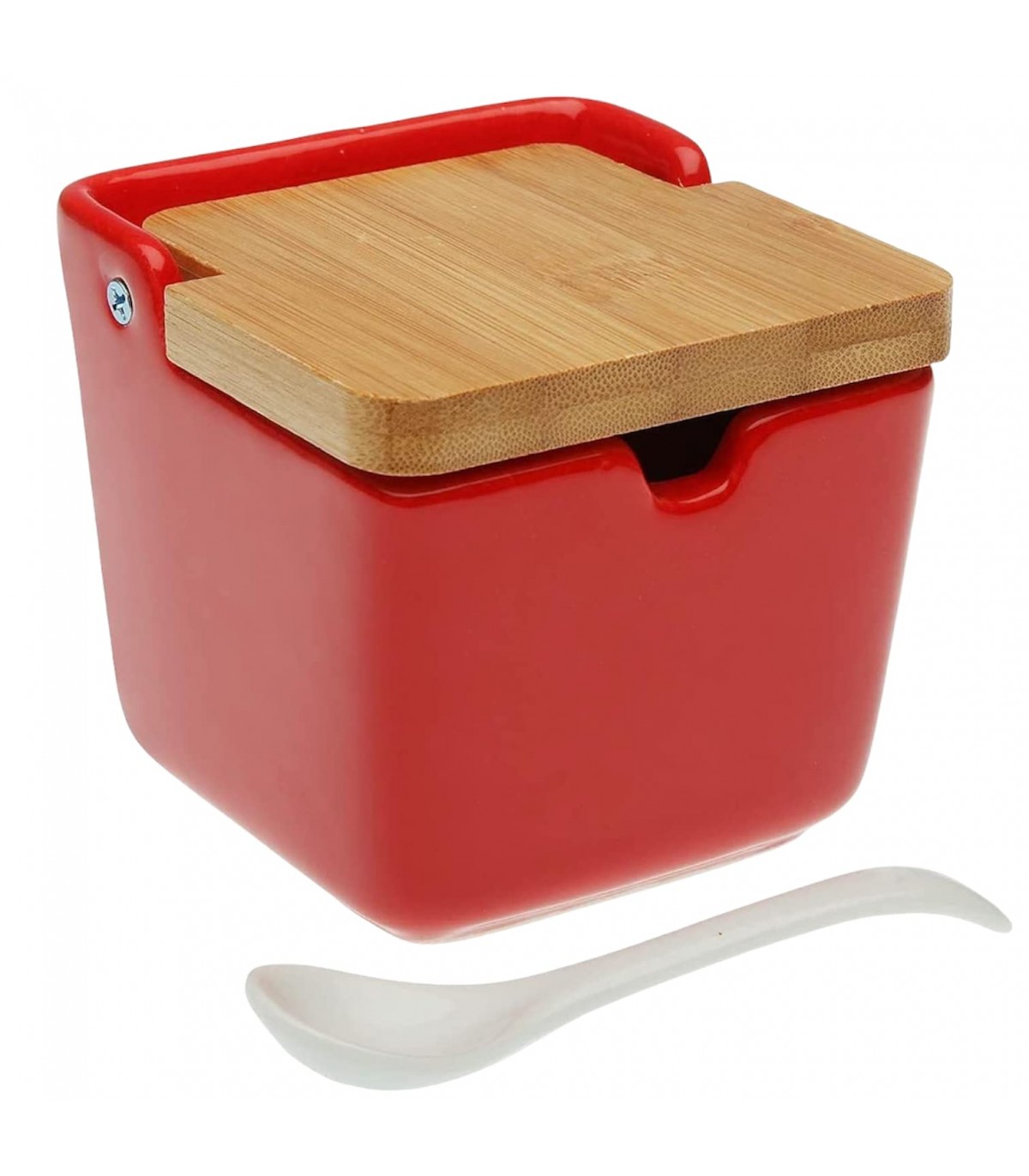 Azucarero de Cocina, Cerámica con Tapa, 11,2x11,2x10,3 cm, Rojo