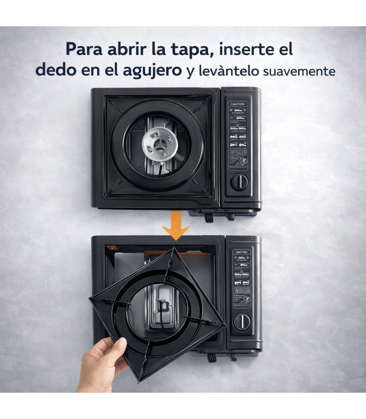 SEGURO Y CONFIABLE EN SU USO. Diseñado con sistema de bloqueo que ayuda a una correcta fijación, proporcionando mayor estabilidad y un uso más controlado durante la cocción. Funcionamiento sencillo con encendido práctico y conexión rápida mediante adaptador incluido. Ideal tanto para principiantes como para usuarios habituales.