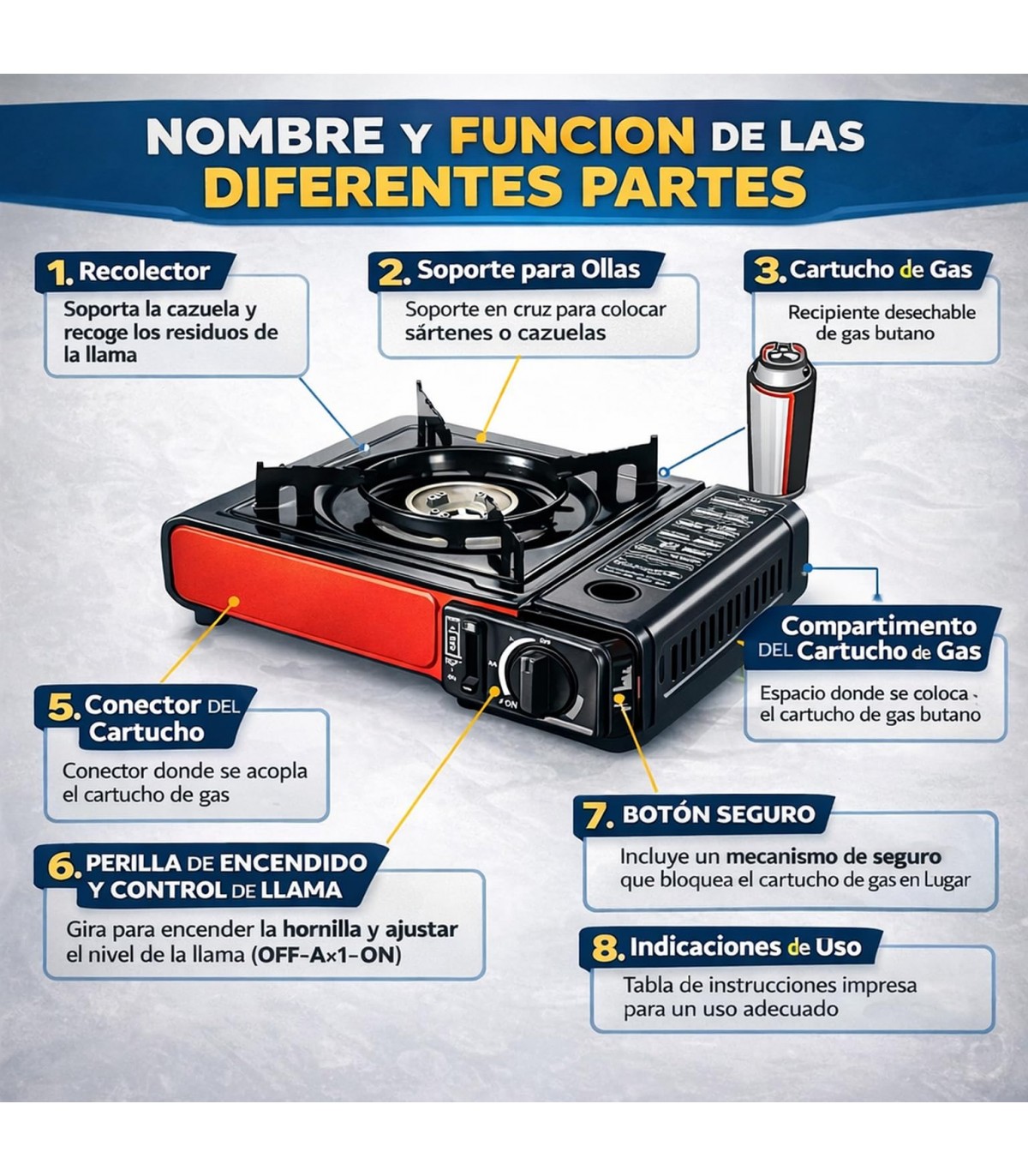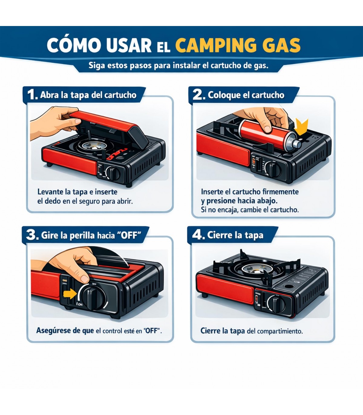 La Cocina Portátil de Gas Butano TIENDA EURASIA es una opción imprescindible para quienes buscan comodidad, seguridad y rendimiento al cocinar fuera de casa. Compacta, eficiente y fácil de usar, se convertirá en tu mejor aliada para disfrutar de comidas calientes en cualquier lugar. ¡Llévala contigo y cocina sin límites!
