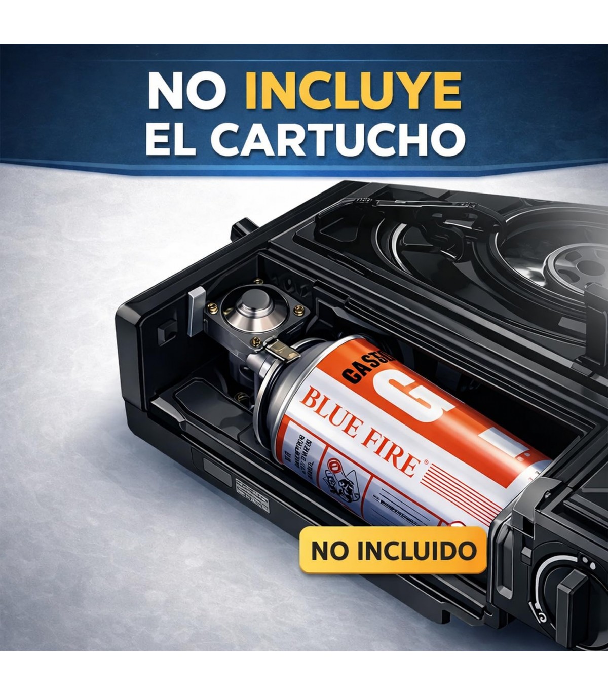 COMPATIBLE CON GAS BUTANO. Incluye adaptador para bombona de gas butano, ofreciendo una solución versátil y cómoda para cocinar en exteriores sin complicaciones.