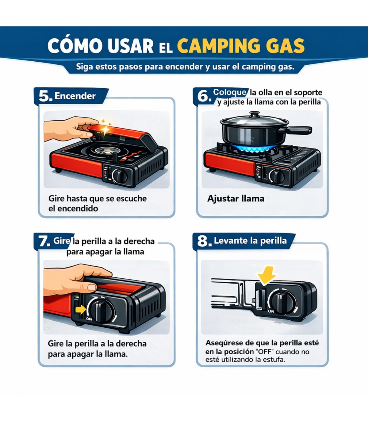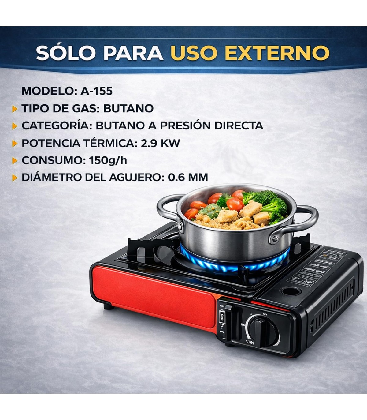 POTENTE Y EFICIENTE PARA COCINAR EN EXTERIOR. Ofrece un rendimiento óptimo para calentar y cocinar de forma rápida y uniforme, ideal para preparar tus comidas cómodamente en camping, jardín o escapadas al aire libre. Ideal para camping, picnic, viajes, pesca, emergencias en el hogar o cualquier actividad al aire libre donde necesites cocinar de forma práctica.