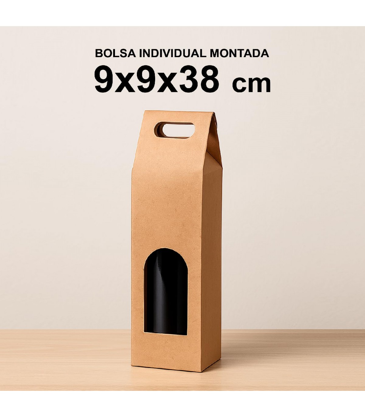 DISEÑO ELEGANTE CON VENTANA. Cada bolsa cuenta con una ventana frontal que permite mostrar la botella, aportando distinción y estilo en cada presentación.