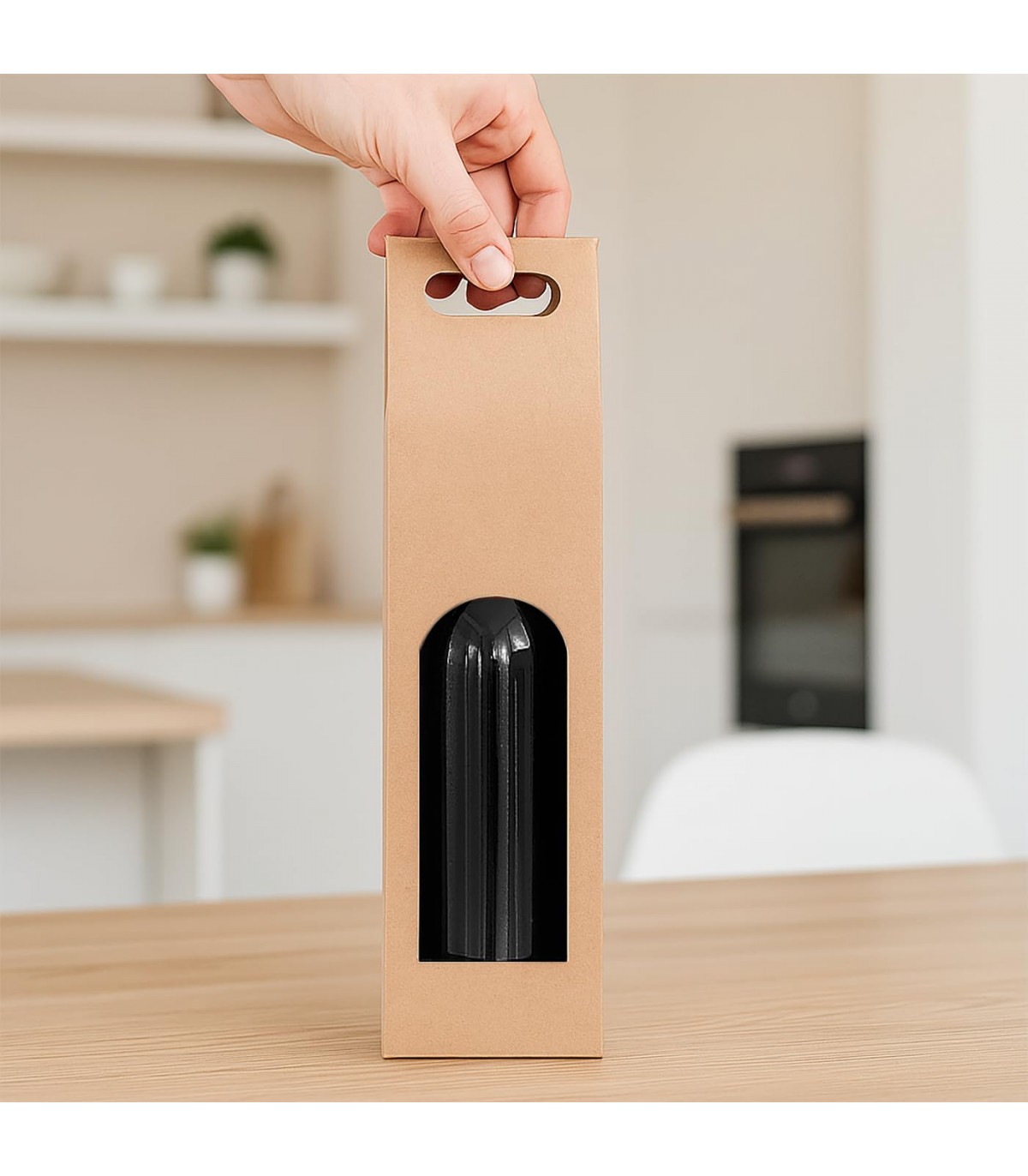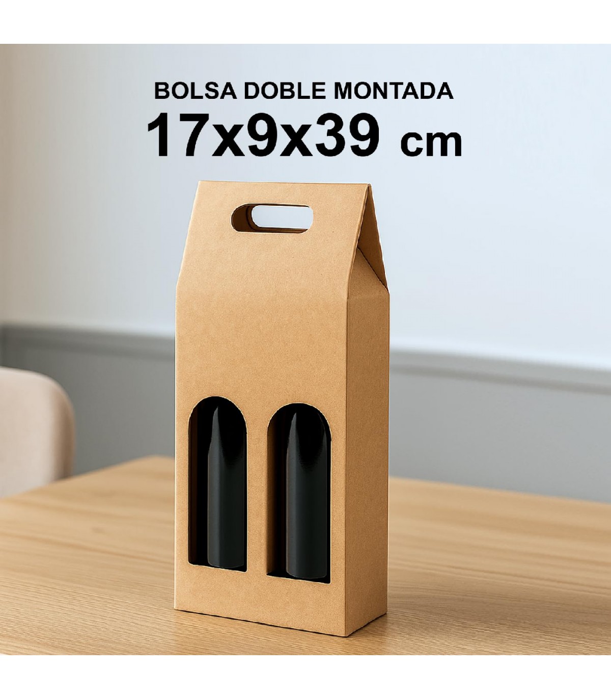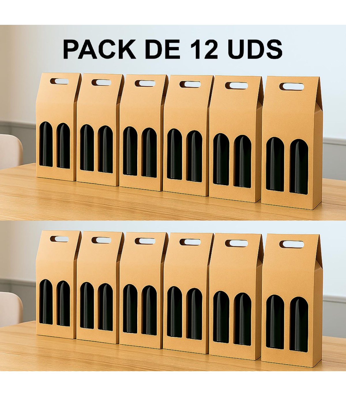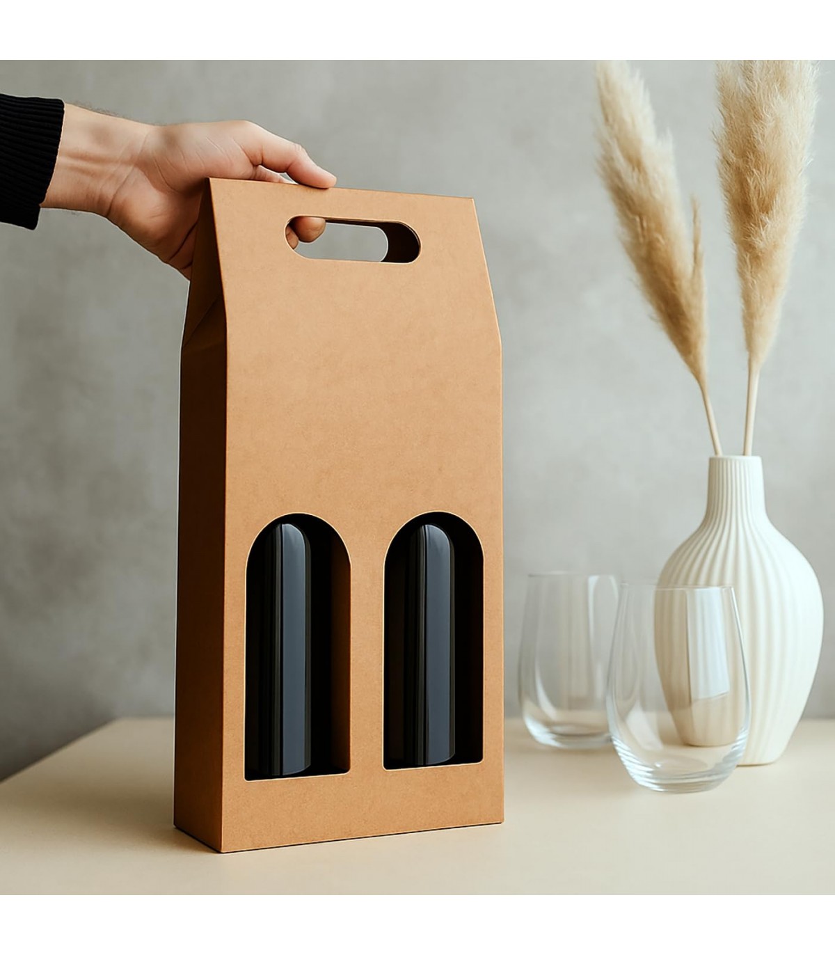 Presenta tus botellas con estilo y practicidad. Las Bolsas de Papel Kraft para Vino de TIENDA EURASIA son la opción perfecta para transportar, proteger y regalar tus botellas con un toque elegante y natural. Fabricadas en cartón resistente, cuentan con diseños en color marrón y ventanas frontales que permiten lucir el contenido de forma sofisticada. Disponibles en versión individual (9x9x58 cm) y doble (17x9x39 cm), se adaptan a distintas necesidades de uso.