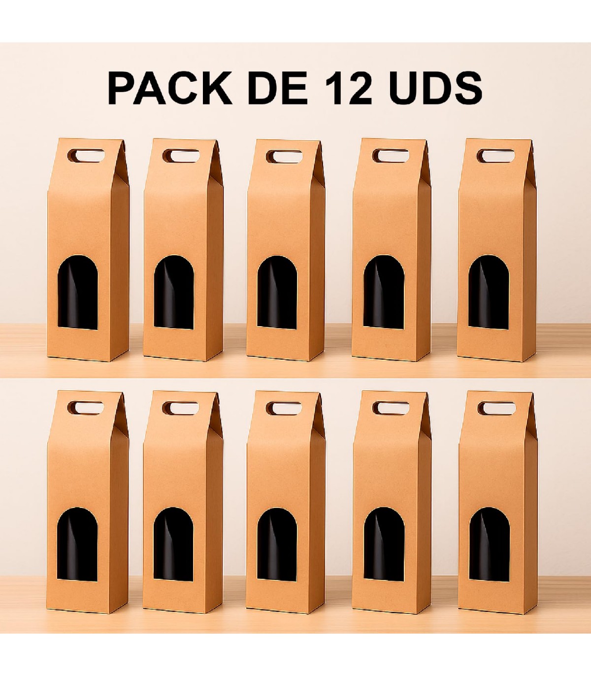 Pack 12 Uds Bolsas Papel Kraft, para Botellas, con Ventanas, Material Cartón, Color Marrón