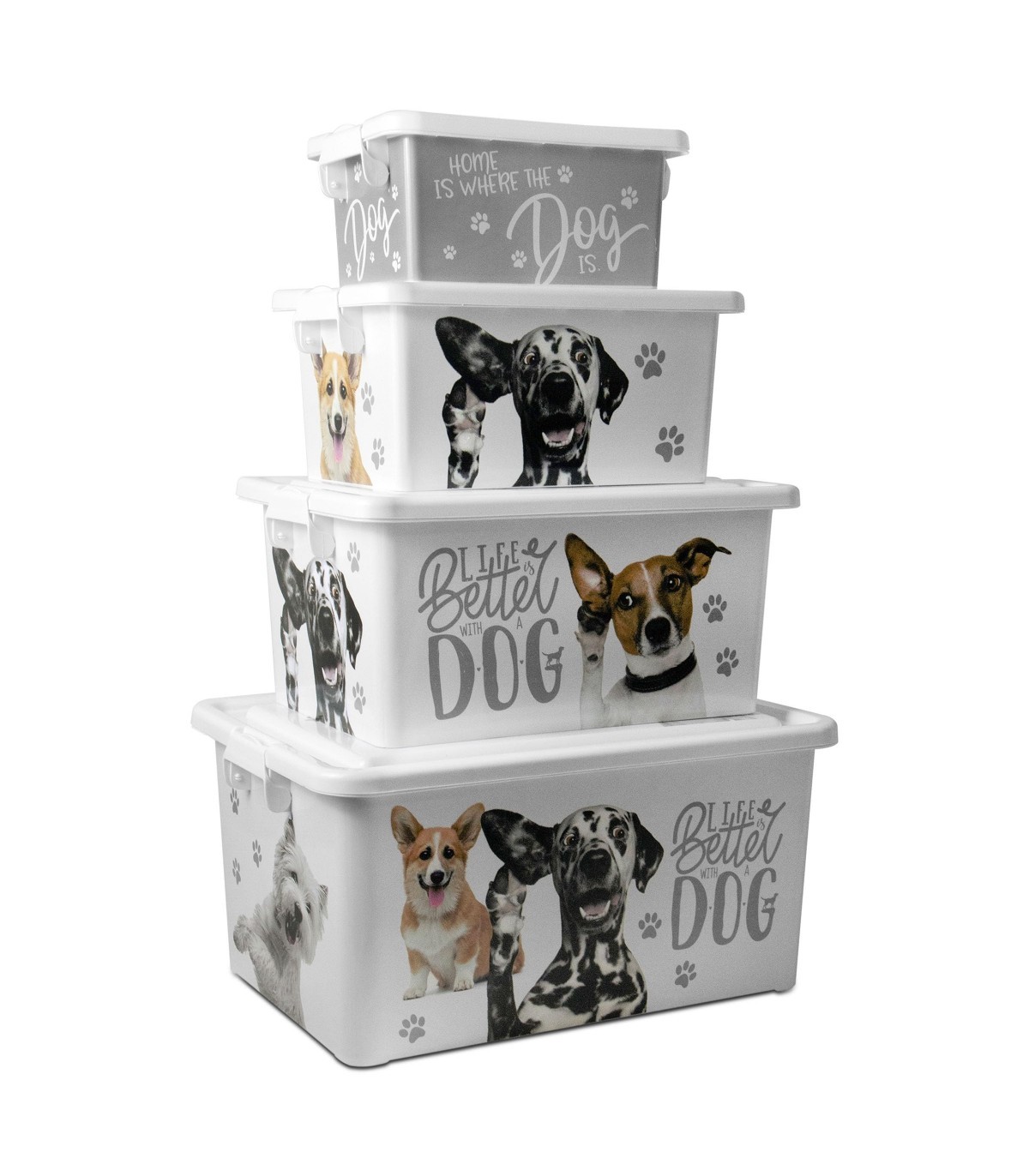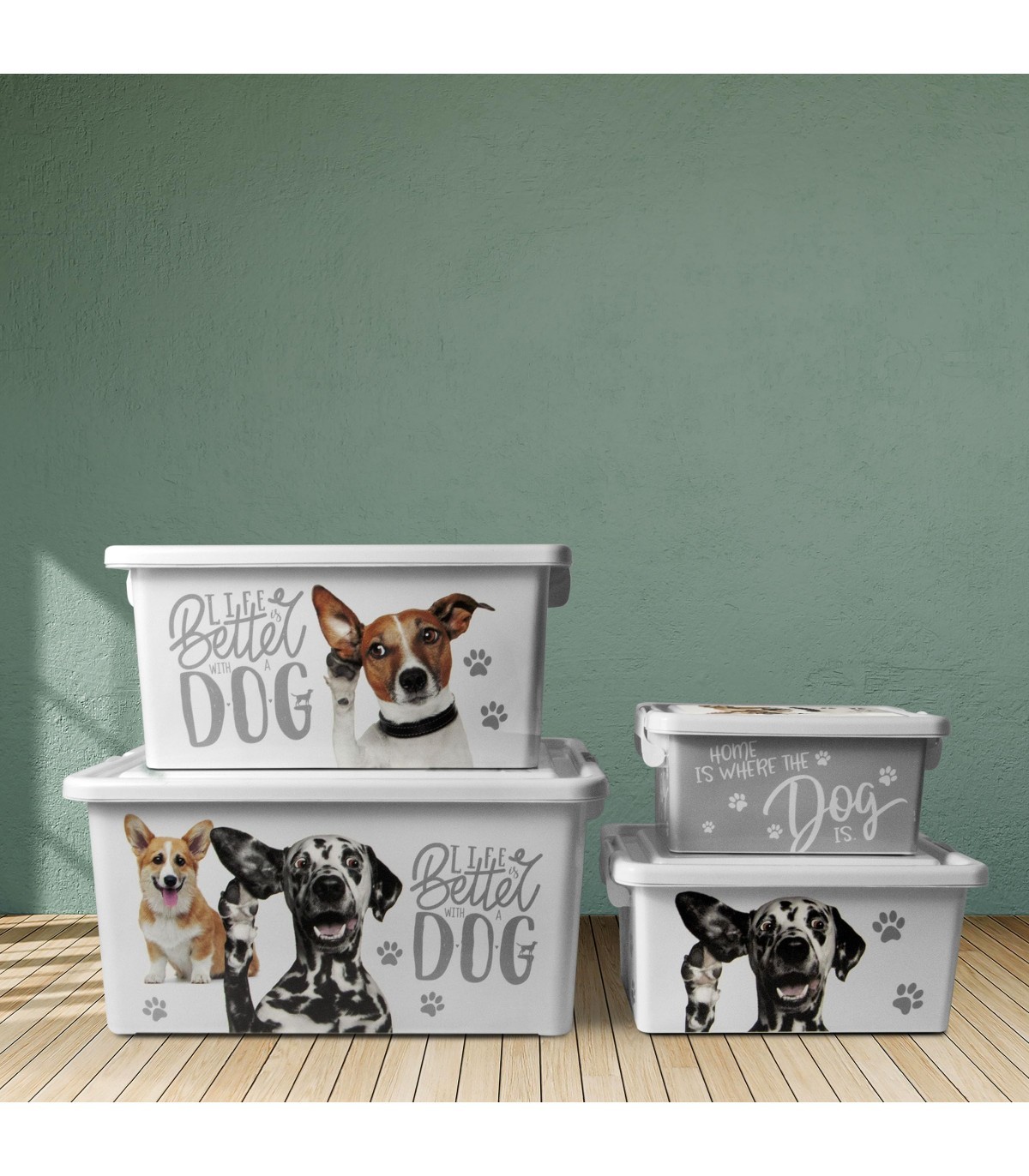 Organiza tus espacios de forma práctica y con estilo con el Pack de 4 Cajas de Almacenaje con Asas de TIENDA EURASIA. Estas cajas de almacenamiento de plástico son perfectas para el hogar, ideales para almacenar juguetes, accesorios y cualquier tipo de artículo que necesites tener a mano. Diseñadas con materiales de alta calidad y disponibles en dos diseños encantadores de perros y gatos, estas cajas aportan funcionalidad y un toque decorativo a tu hogar.