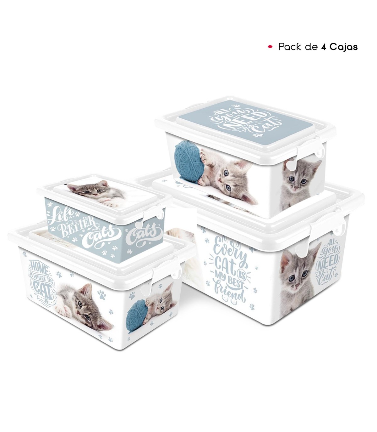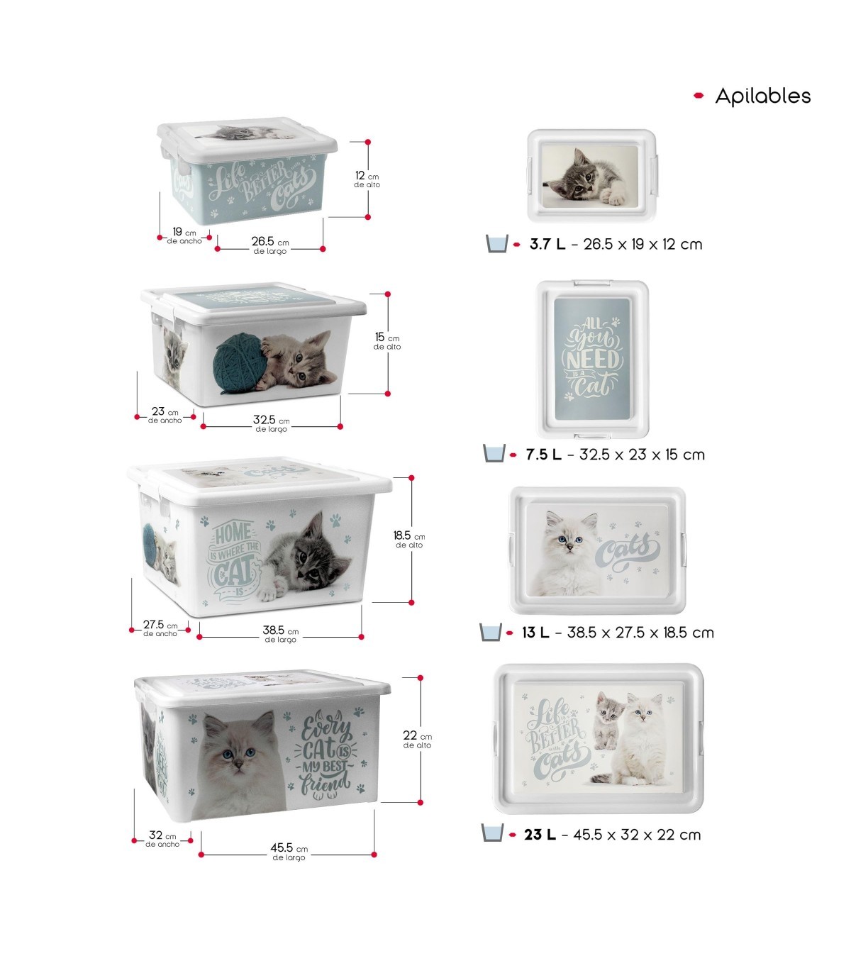 ? DIFERENTES CAPACIDADES PARA TODAS TUS NECESIDADES: Este pack incluye 4 cajas de distintos tamaños (3.7L, 7.5L, 13L y 23L), lo que permite almacenar objetos de diferentes dimensiones.