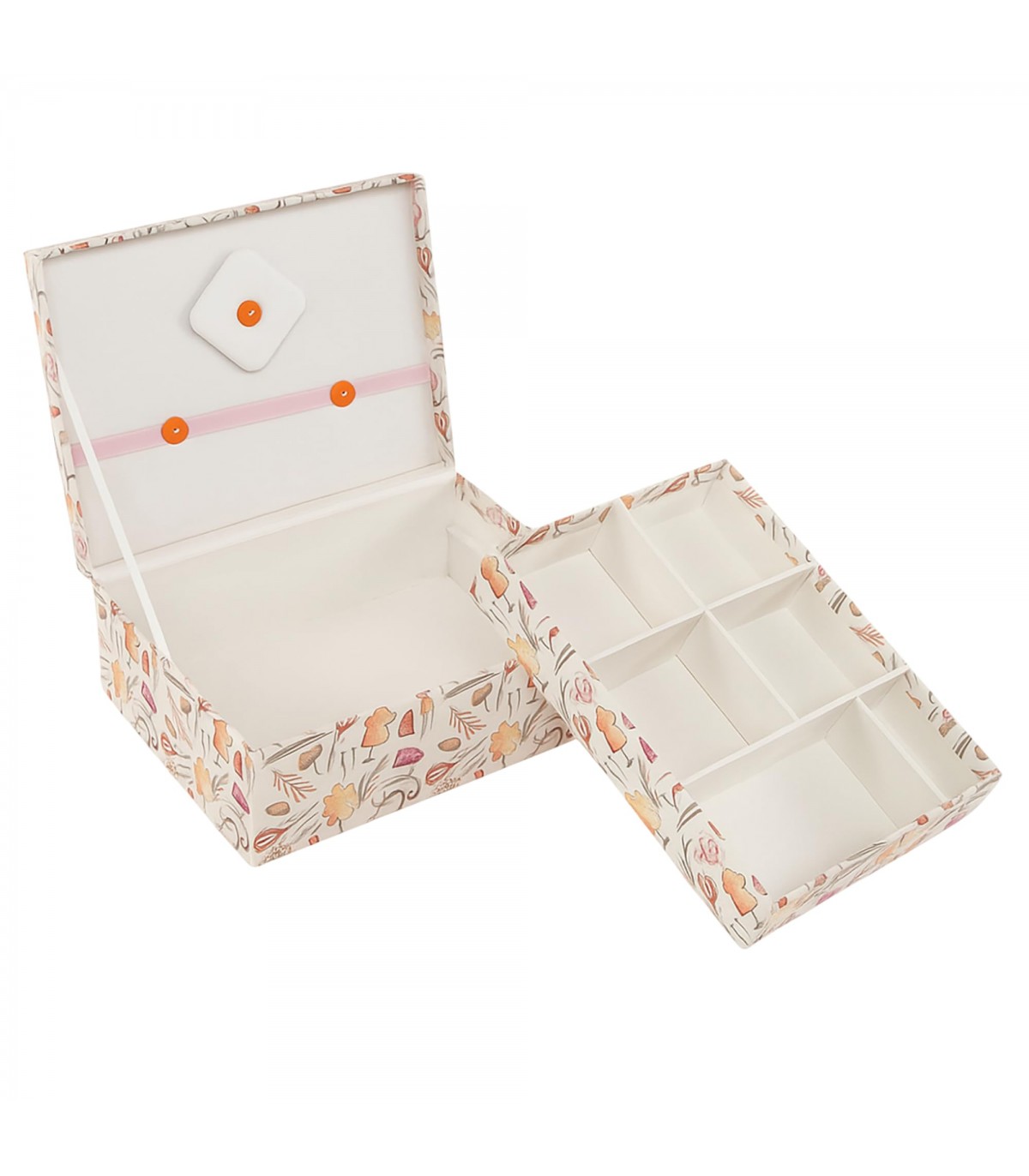 Caja Costura, 6 Departamentos, Cartón, Estampado Multicolor, 20x15x8 cm