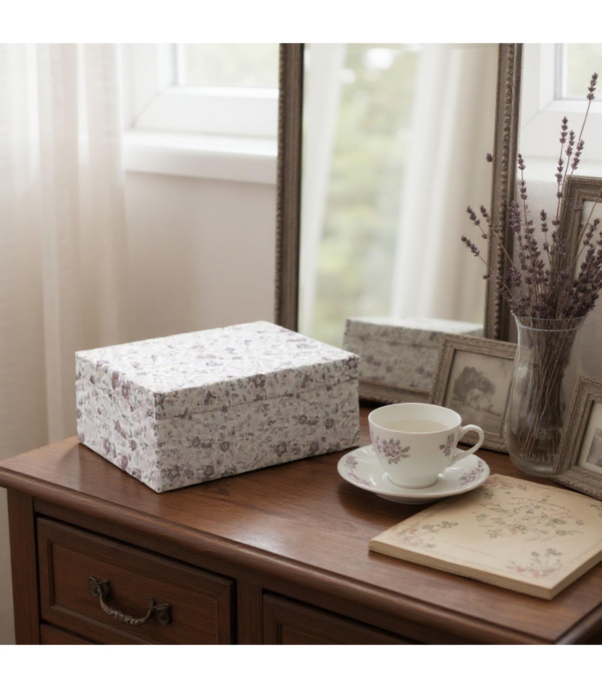MATERIAL RESISTENTE Y LIGERO. Fabricada en cartón de alta calidad, esta caja ofrece una excelente durabilidad, siendo a la vez ligera y fácil de transportar. Su tapa firme protege el contenido del polvo y mantiene todo en perfecto estado.