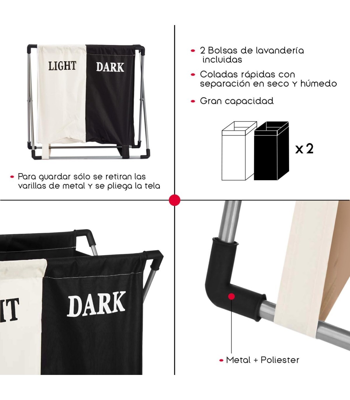 Construido para resistir el uso diario, este cesto de ropa doble es la opción ideal para mantener tu colada organizada y tu hogar impecable. Su duradero material de metal y poliéster garantiza una estructura sólida que soporta el peso de la ropa sin problemas. Además, su diseño plegable facilita su almacenamiento cuando no está en uso, lo que lo convierte en una solución práctica para espacios pequeños. Ya sea que estés buscando una solución funcional para la colada o un elemento decorativo para tu hogar, nuestro cesto de ropa doble es la elección perfecta para ti.