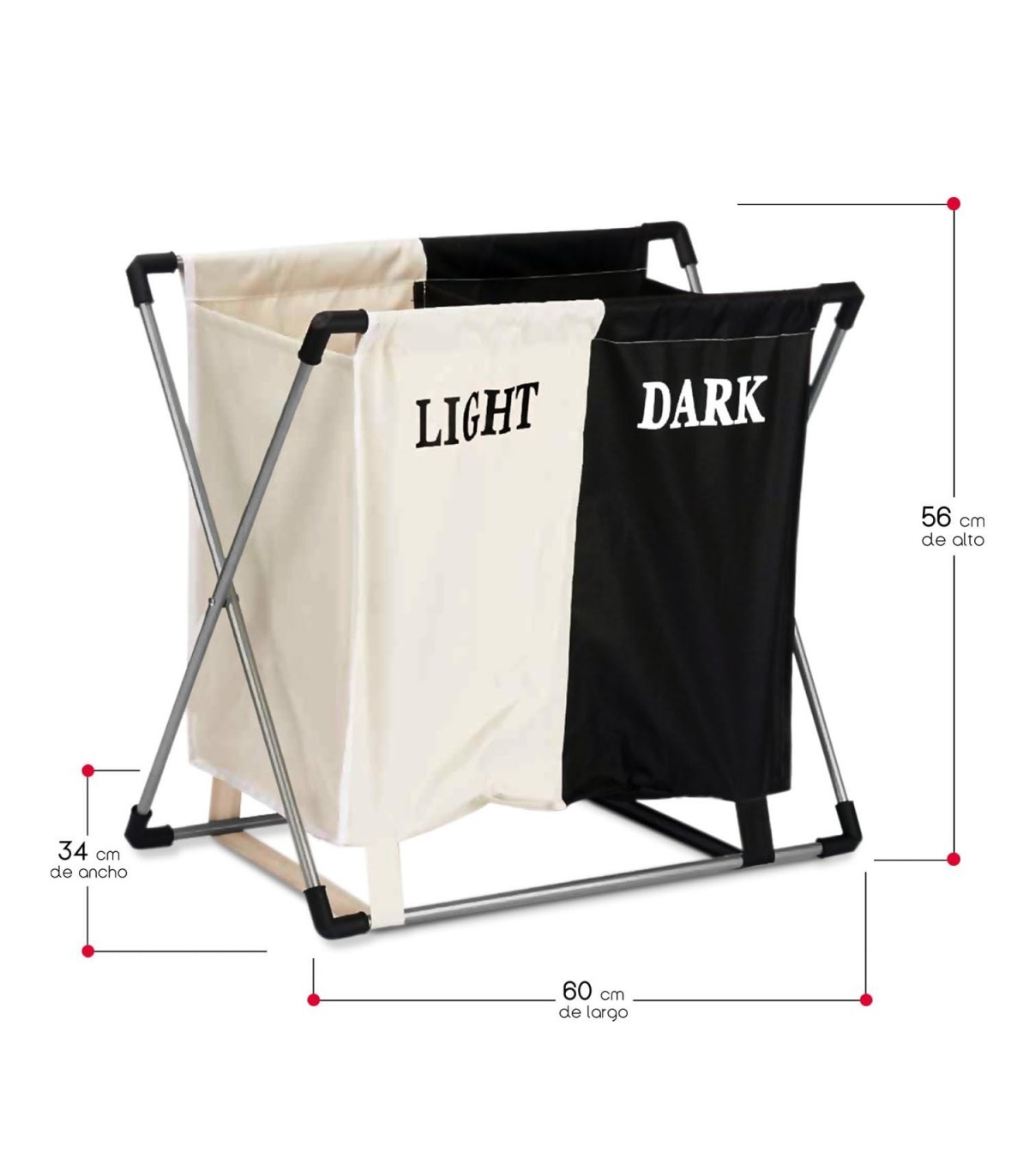 Este cesto de ropa doble no solo es práctico, sino que también agrega un toque de elegancia a tu hogar. Su diseño moderno en blanco y negro se integra fácilmente con cualquier estilo de decoración, mientras que sus dimensiones de 60 cm de largo x 56 cm de alto x 34 cm de ancho ofrecen una capacidad generosa sin ocupar demasiado espacio. Olvídate del desorden y disfruta de un hogar ordenado y estilizado con nuestro cesto de ropa doble, diseñado para simplificar tu vida diaria.