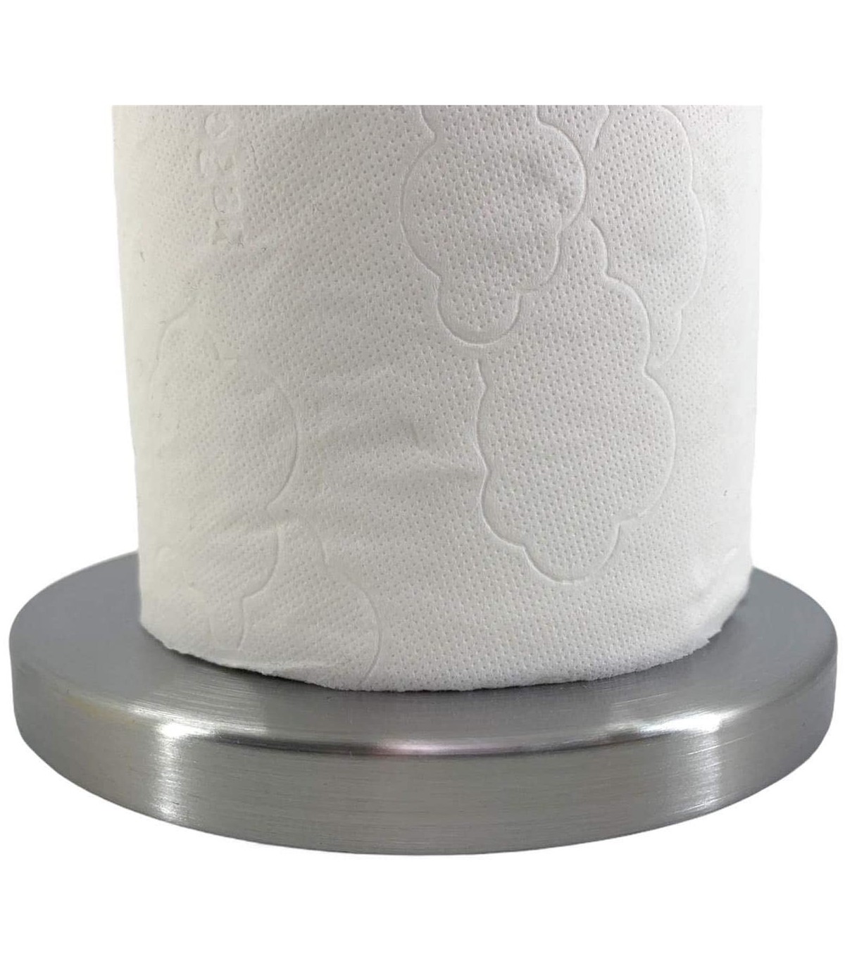 Un soporte de papel higiénico elegante diseñado para ayudar a ahorrar espacio en el baño y sin necesidad de perforar las paredes.