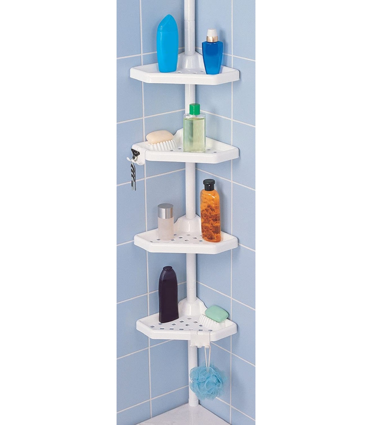 MSV ESTANTERIA DE Ducha DE PLASTICO DE Rincon Auto SOSTENIDA, Metal, Blanco, 8.86x6.3x88.58 Inches