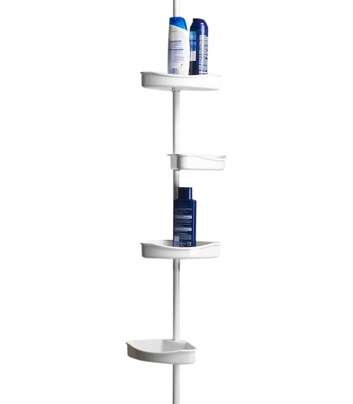 - ✅ Estupenda estantería de rincón para la ducha, con cuatro baldas, que se sujeta por presión al suelo y al techo, sin necesidad de agujerear los azulejos