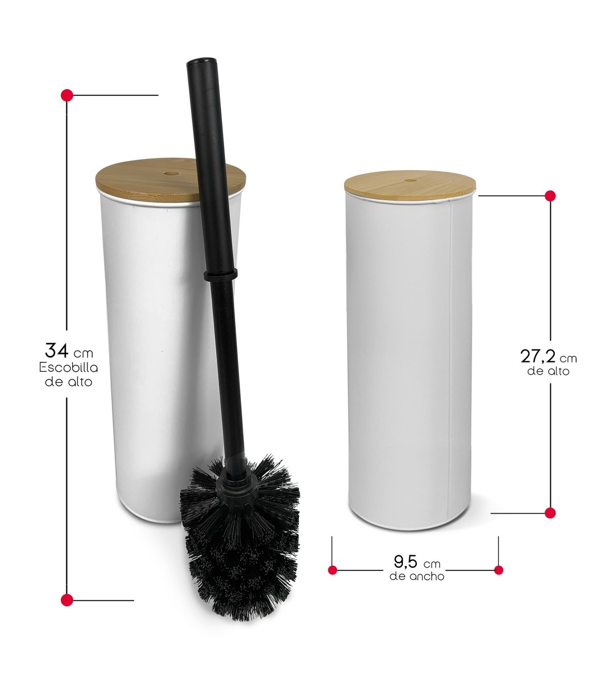 Dale a tu baño un toque de elegancia y funcionalidad con nuestro moderno escobillero de metal con tapa de bambú. Diseñado para brindarte una experiencia de limpieza excepcional, este escobillero combina a la perfección estilo y practicidad para satisfacer todas tus necesidades de higiene en el baño.