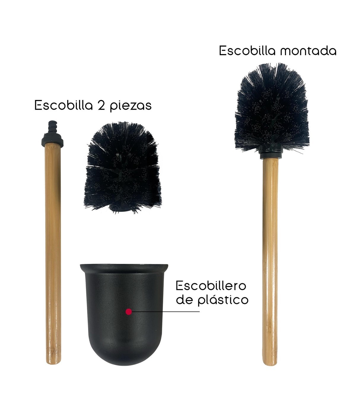 La escobilla incluida en este conjunto cuenta con un mango de bambú, que no solo aporta un aspecto exquisito, sino también una experiencia de limpieza cómoda y ergonómica. La mezcla de funcionalidad y belleza hacen que esta escobilla sea un accesorio esencial para tu baño.