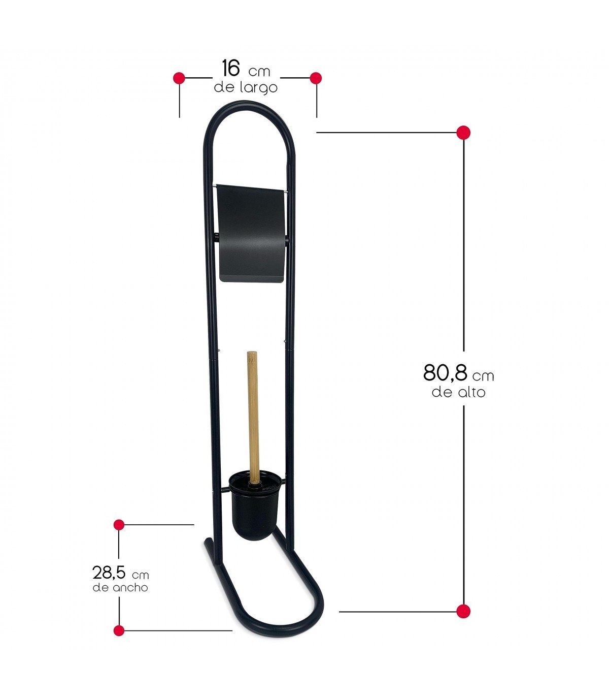 Con medidas de 28,5 x 16 x 80,8 cm, nuestro portarrollos se adapta perfectamente a cualquier baño. Su diseño elegante y moderno, combinado con el toque natural del bambú, lo convierte en un accesorio que complementa cualquier decoración, desde estilos contemporáneos hasta aquellos más rústicos.
