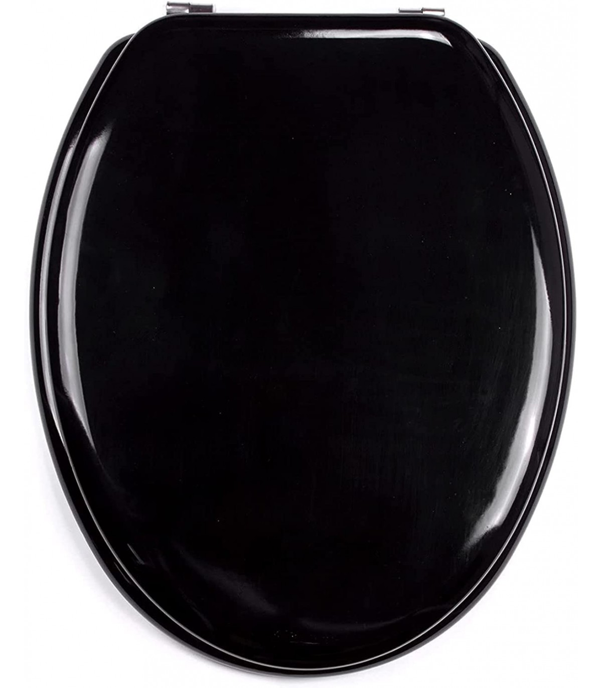 Tapa wc Universal de Madera, Negro, Bisagras de Acero Inox, 43,5x37,5 cm