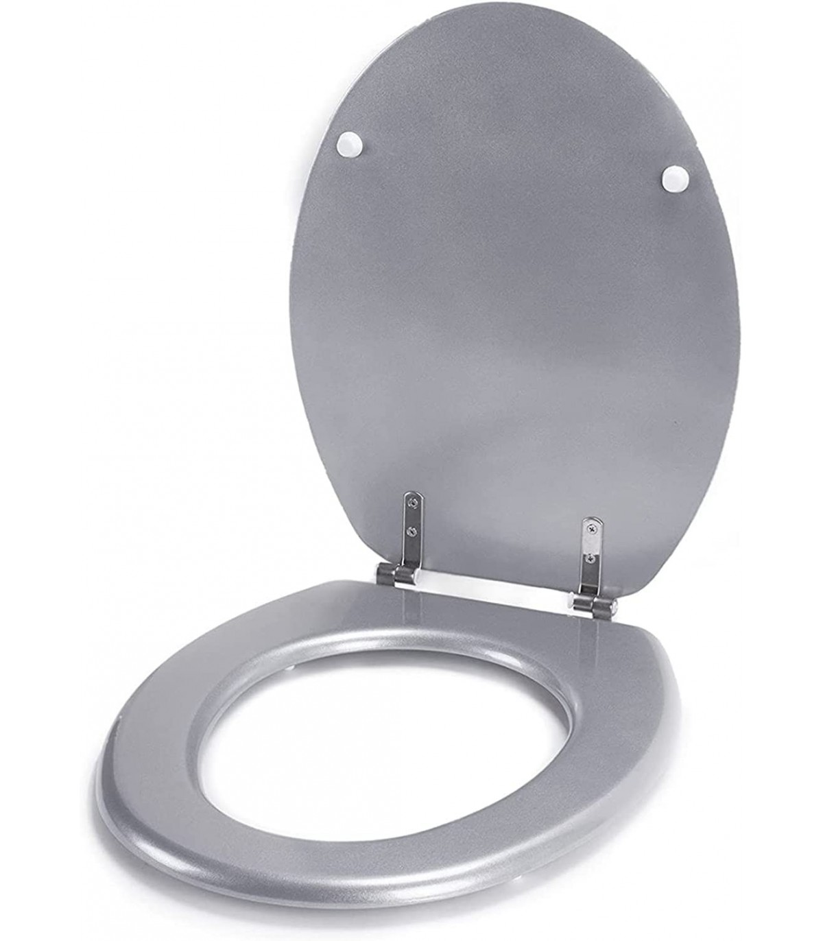 Tapa wc Universal de Madera, Plata, Bisagras de Acero Inox, 43,5x37,5 cm
