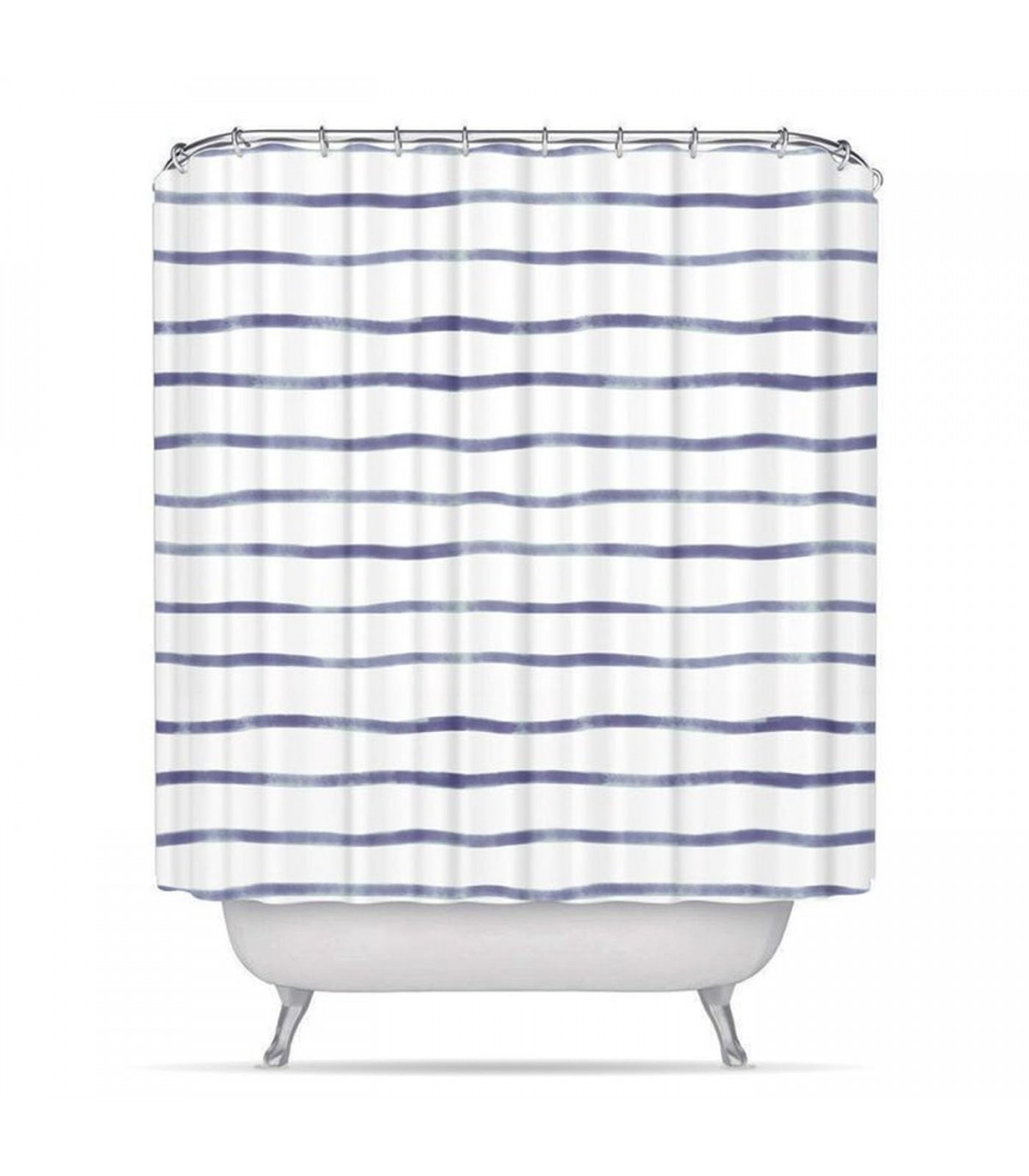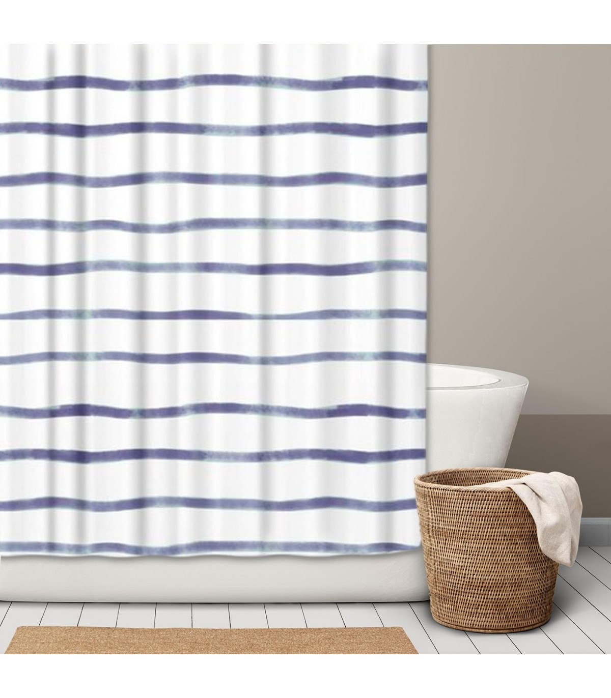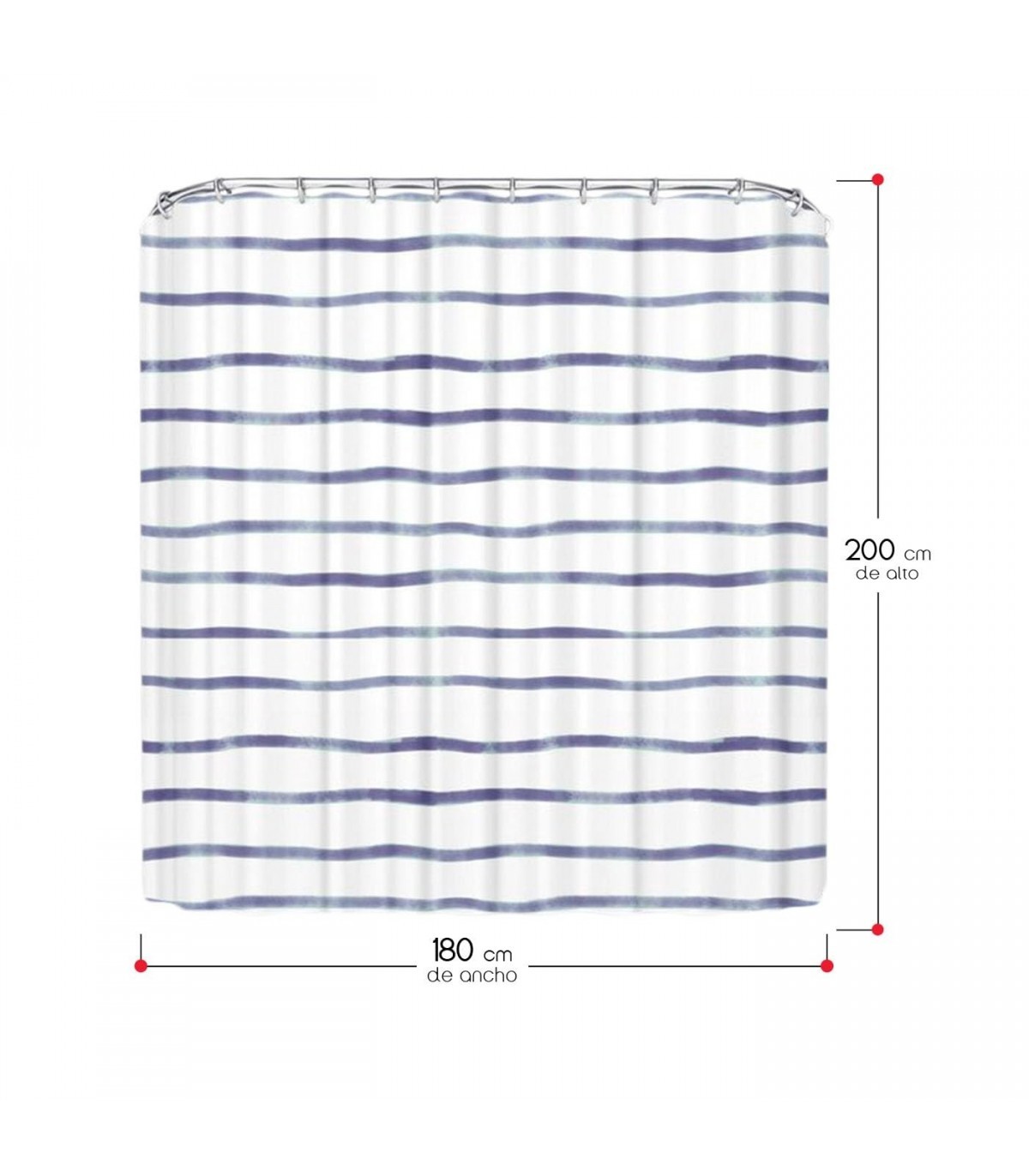 Cortina de Baño, 180x200cm, Poliéster, Incluye 12 Anillas (Rayas Azul)