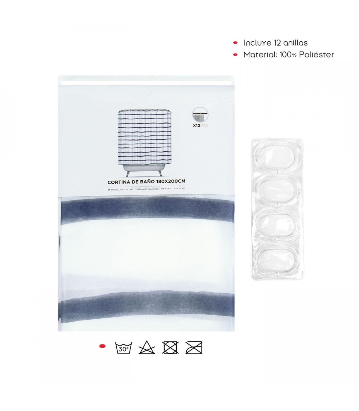 ? FÁCIL DE INSTALAR: Incluye 12 anillas resistentes para una fácil instalación sin necesidad de herramientas adicionales. Simplemente cuélgala en tu barra de cortina y ¡listo!