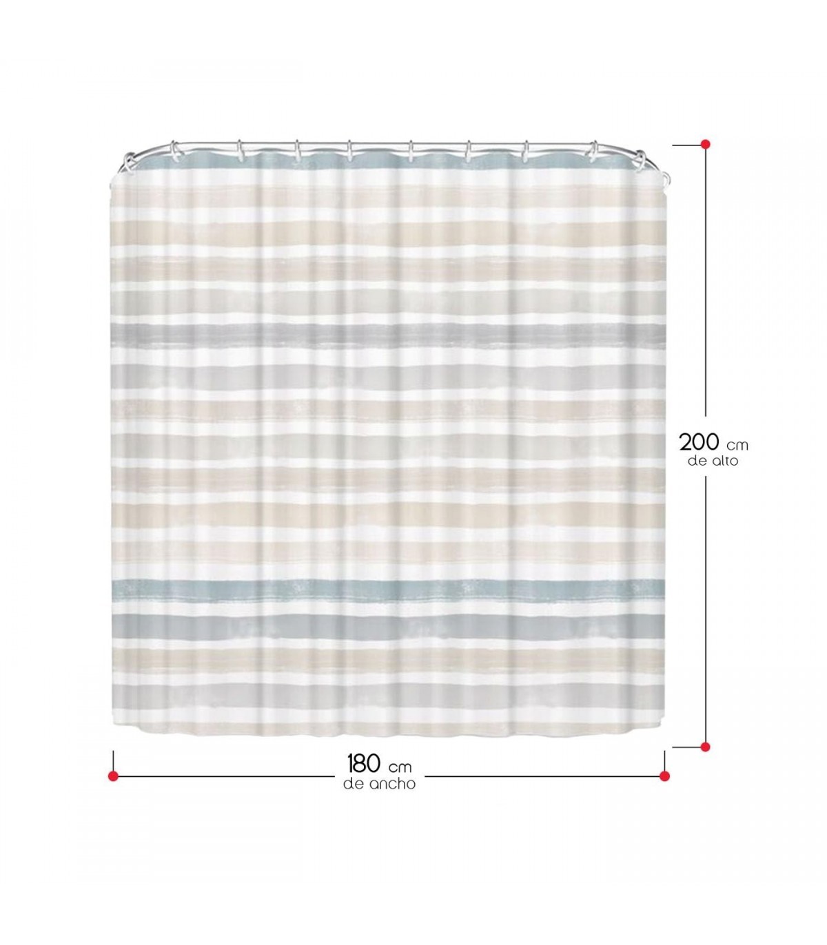 Cortina de Baño, 180x200cm, Poliéster, Incluye 12 Anillas (Rayas Color)