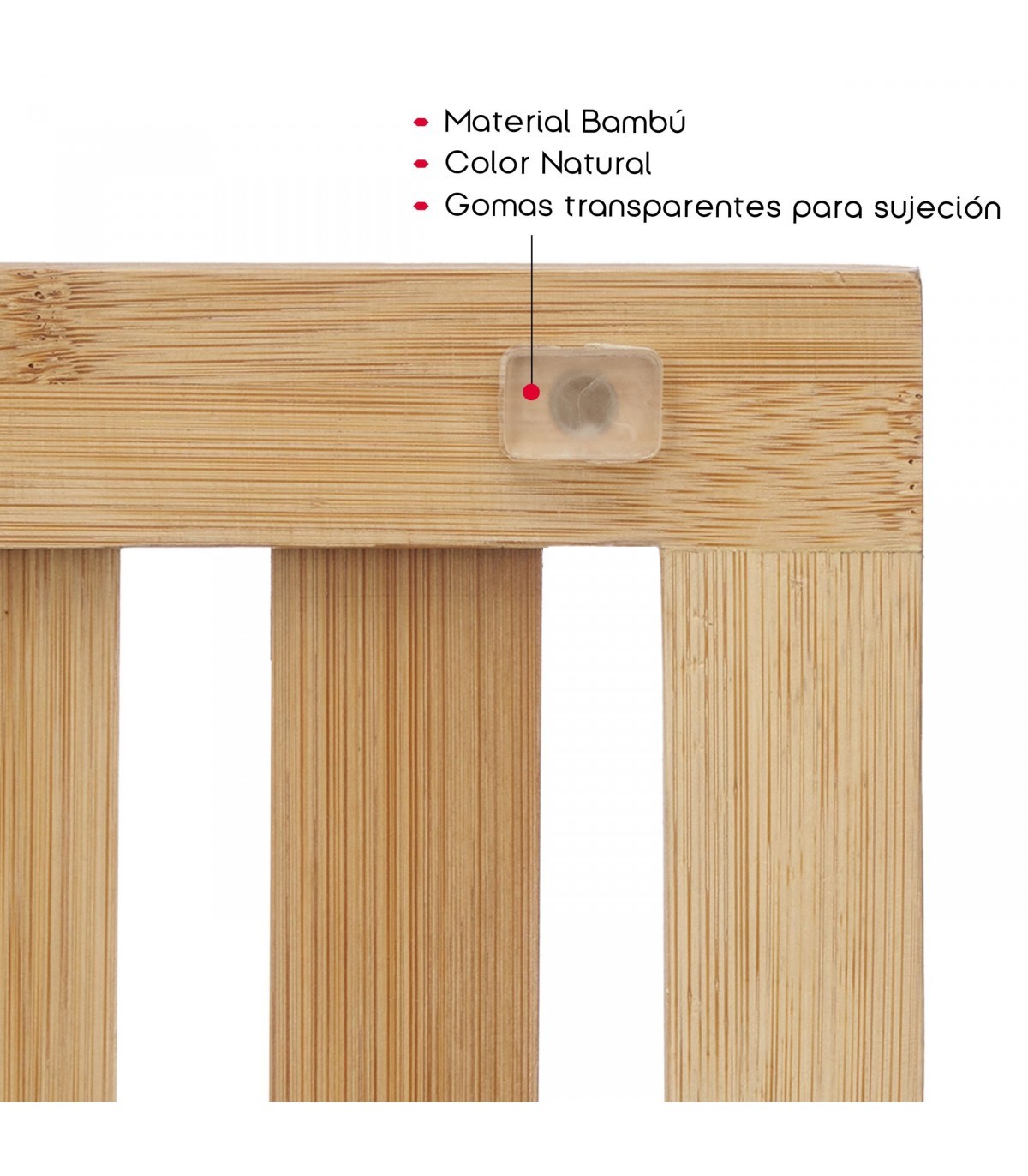 ? MATERIAL 100% BAMBU: Elaborada en bambú, un material ecológico y duradero, que resiste la humedad y se mantiene en perfectas condiciones a lo largo del tiempo.
