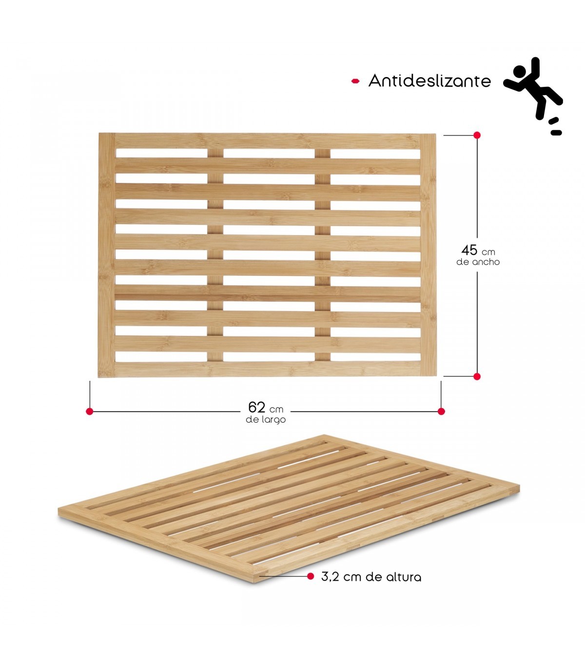 ? DIMENSIONES IDEALES: Con medidas de 45 x 62 x 3.2 cm, ofrece un espacio amplio y cómodo para tus pies, sin ocupar demasiado espacio en tu baño.