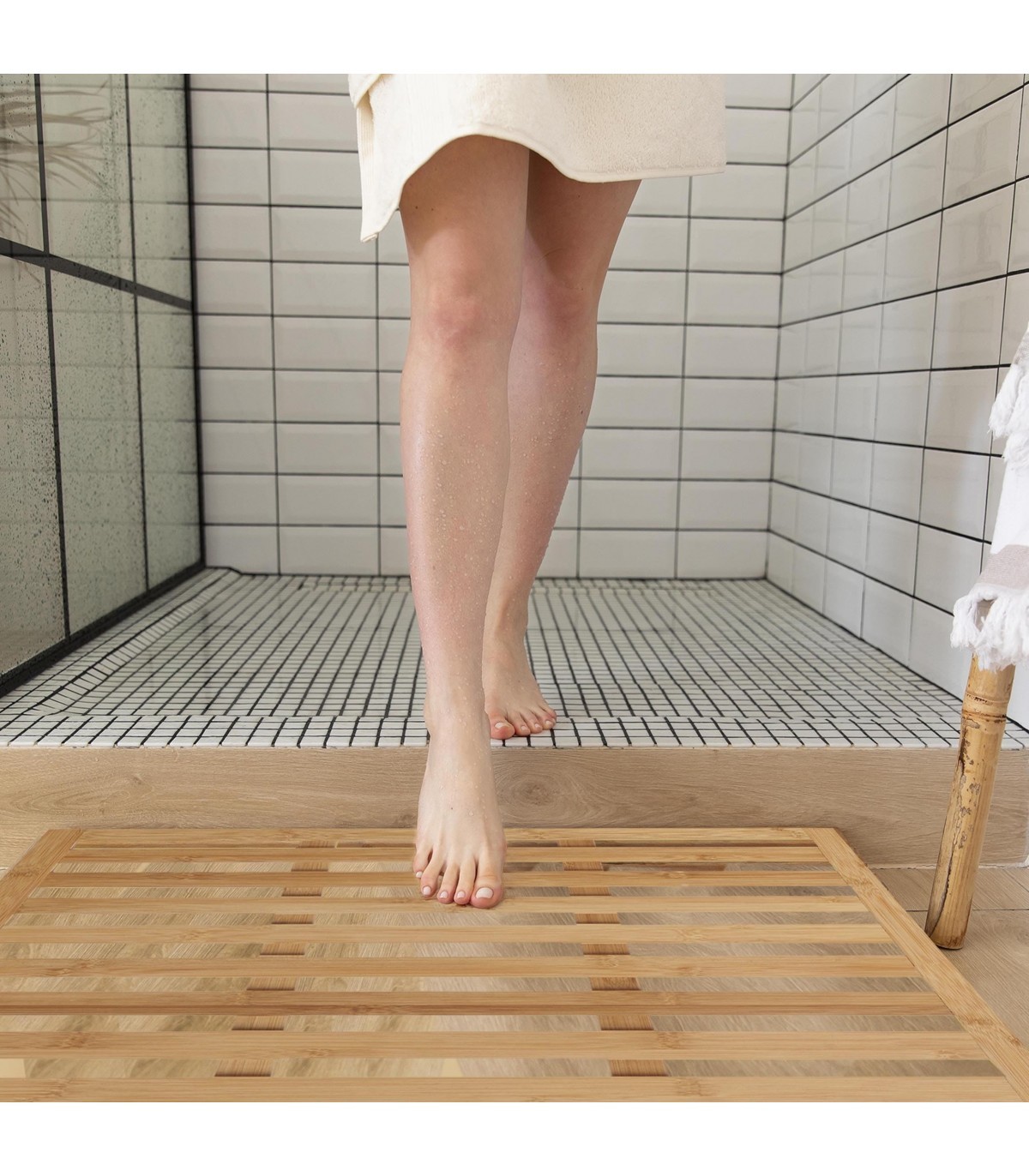 ? VERSATILIDAD TOTAL: Perfecta tanto para uso en interiores como exteriores, es ideal para la ducha, sauna, spa o incluso como una elegante alfombra de baño.