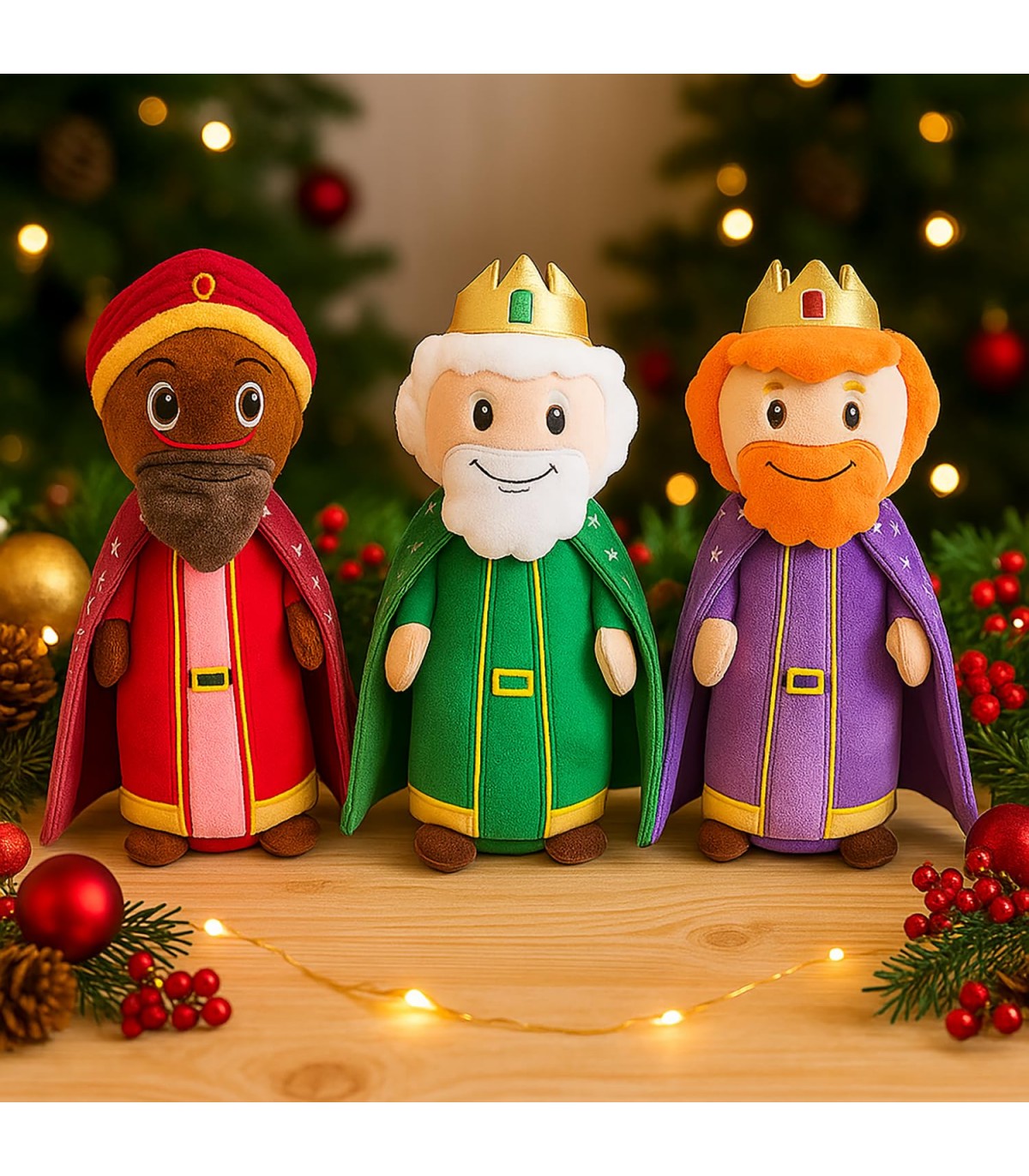 Los Peluches Reyes Magos de TIENDA EURASIA son el complemento ideal para quienes buscan una decoración navideña entrañable y tradicional. Con su diseño adorable, materiales suaves y colores vibrantes, estos peluches aportan un toque de magia y ternura a cada rincón durante las fiestas más esperadas del año.