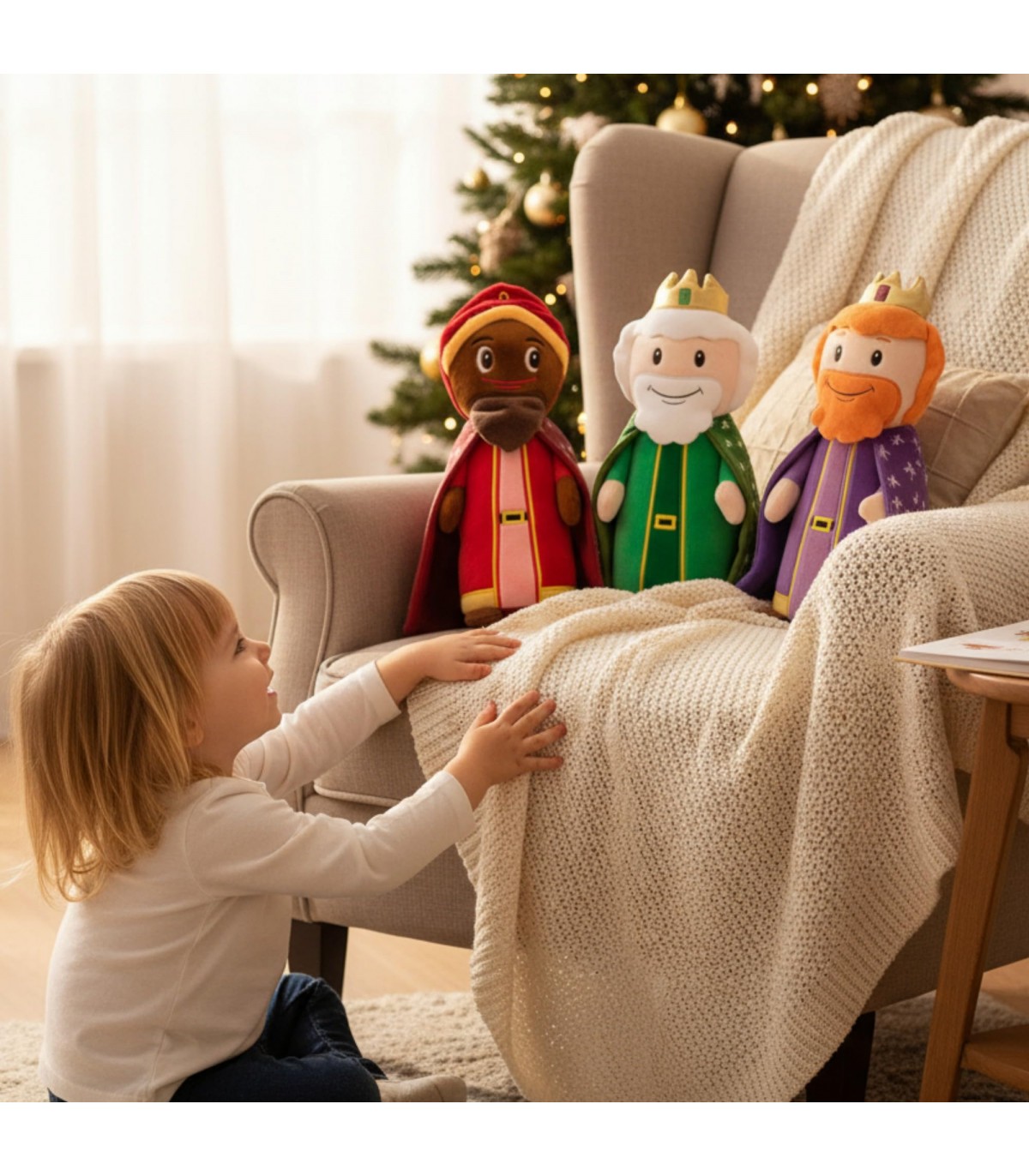 PACK DE LOS TRES REYES MAGOS. Incluye las tres figuras clásicas: Melchor, Gaspar y Baltasar, con expresiones amables y un diseño cuidado que captura la esencia de la Navidad.