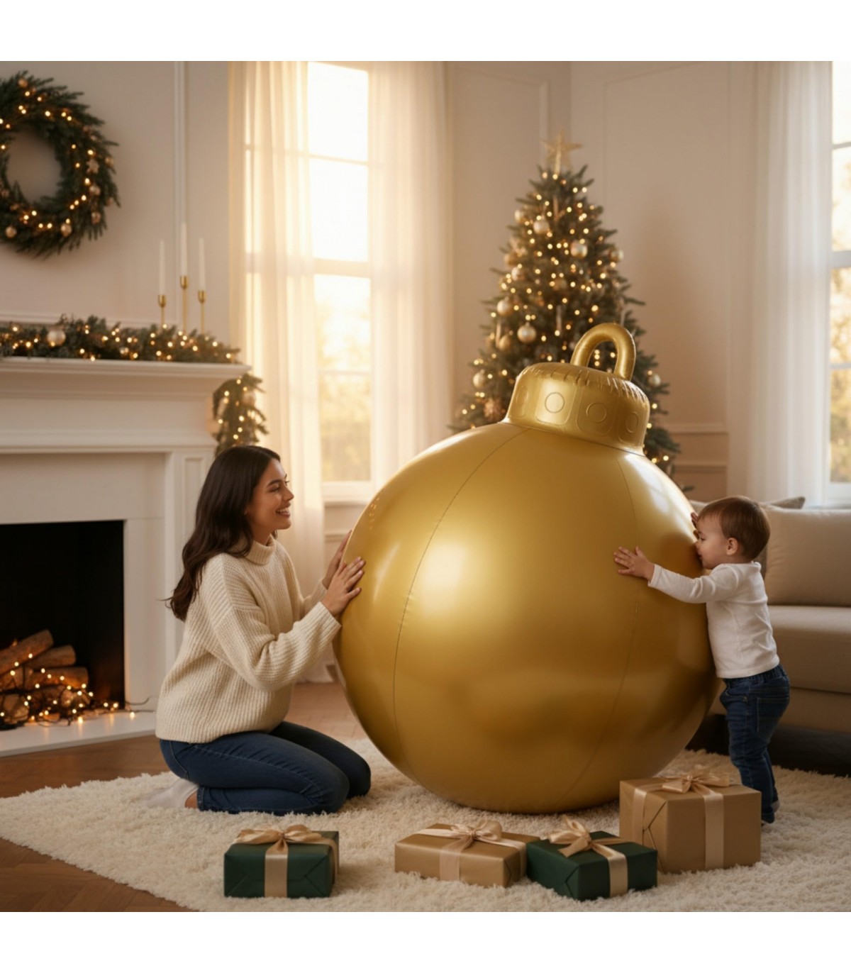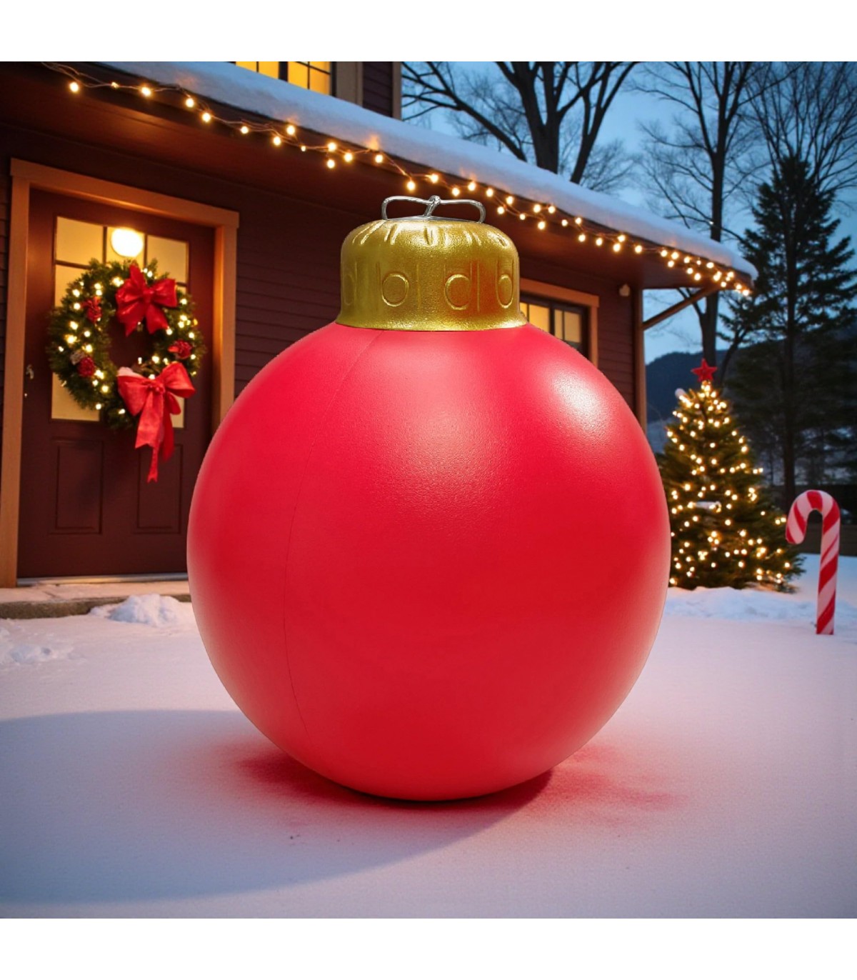 Crea una atmósfera mágica e inolvidable con la Bola Inflable de Navidad Gigante de TIENDA EURASIA, una decoración espectacular que combina brillo, resistencia y elegancia para llenar tus celebraciones de auténtico espíritu navideño.