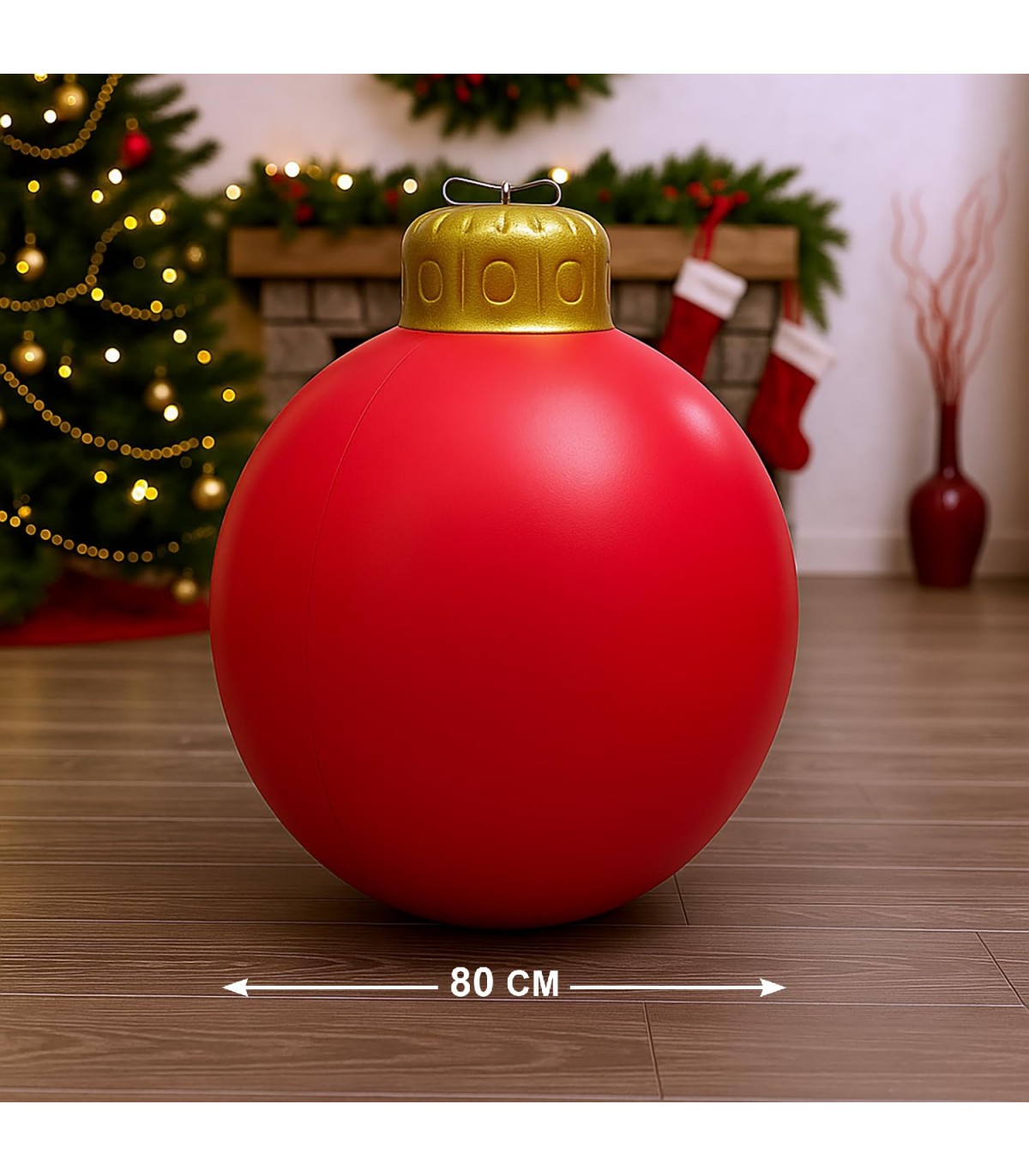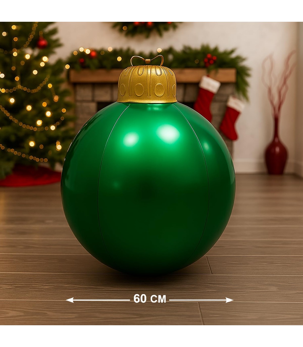 IMPACTANTE Y LLENA DE ESPÍRITU NAVIDEÑO. Con un impresionante diámetro de 40, 60 o 80 cm, esta bola inflable reproduce el encanto de las clásicas bolas navideñas en versión gigante, ideal para sorprender y destacar en cualquier espacio.