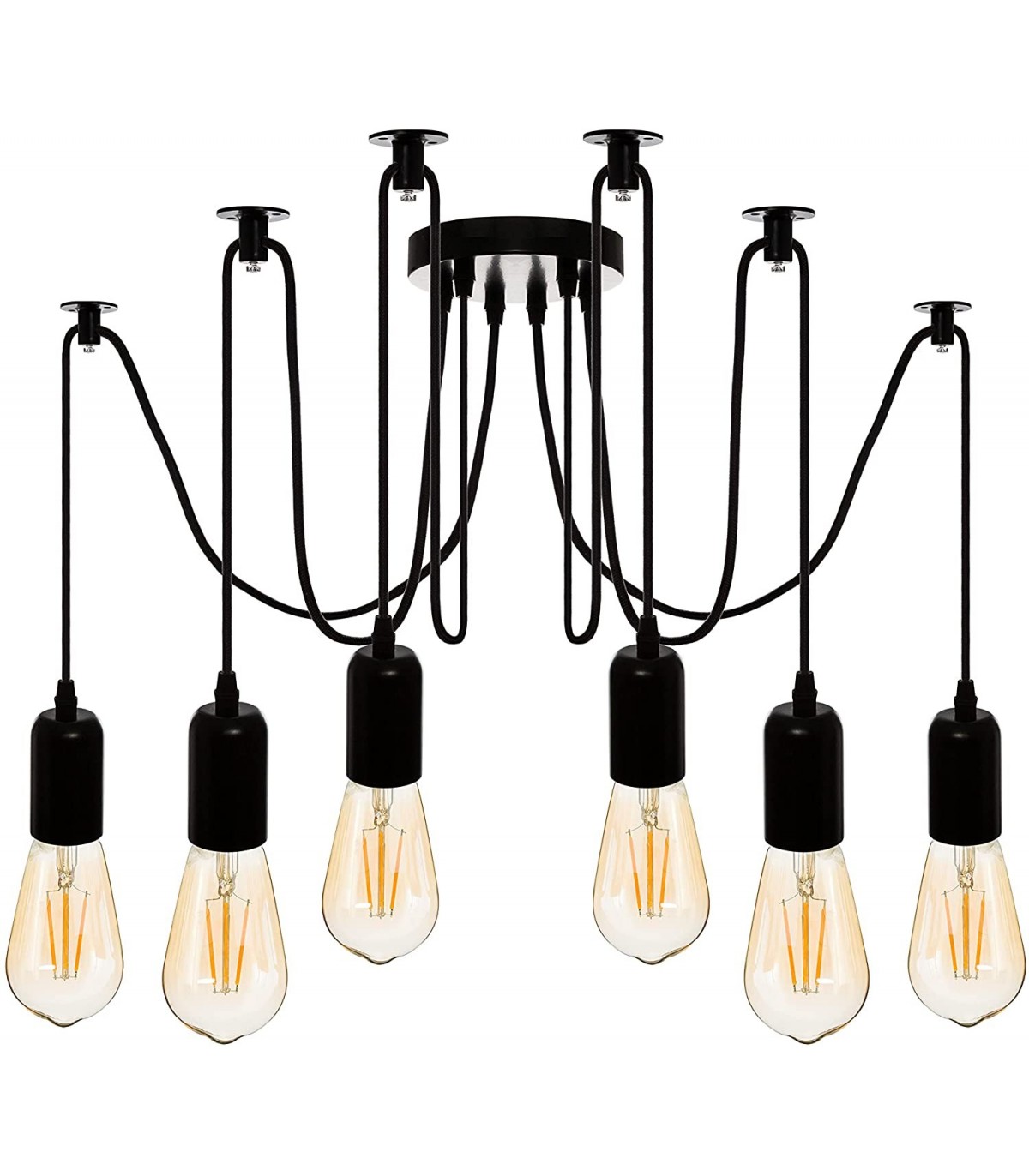 Lampara de Techo Vintage - Lamparas de Techo Modernas - Diseño 6 Colgantes - Medidas - Base. D15 cm Suspensiones de 2m