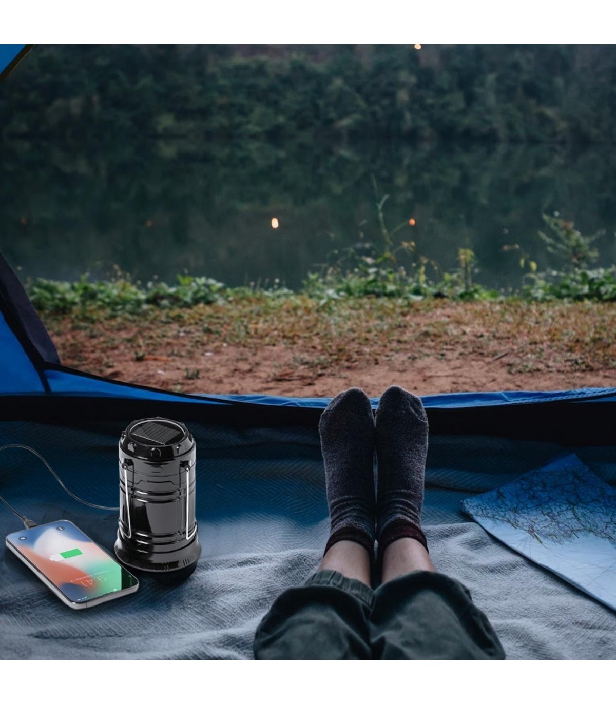 ¡Ilumina tus aventuras al aire libre con la lámpara LED Power Bank con carga solar! Con su diseño compacto y elegante en color negro, esta lámpara te brinda una iluminación brillante y confiable dondequiera que vayas.