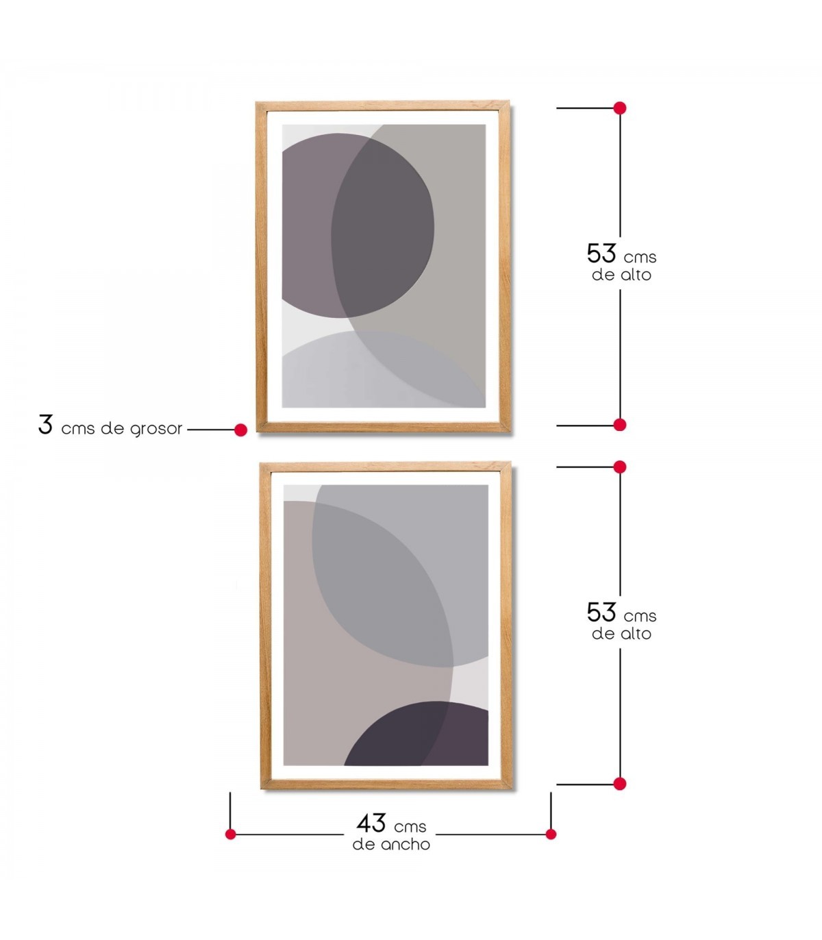 Pack 2 Cuadros Decorativos con Marco de Madera y Cristal, 43x3x53cm (Circulos)