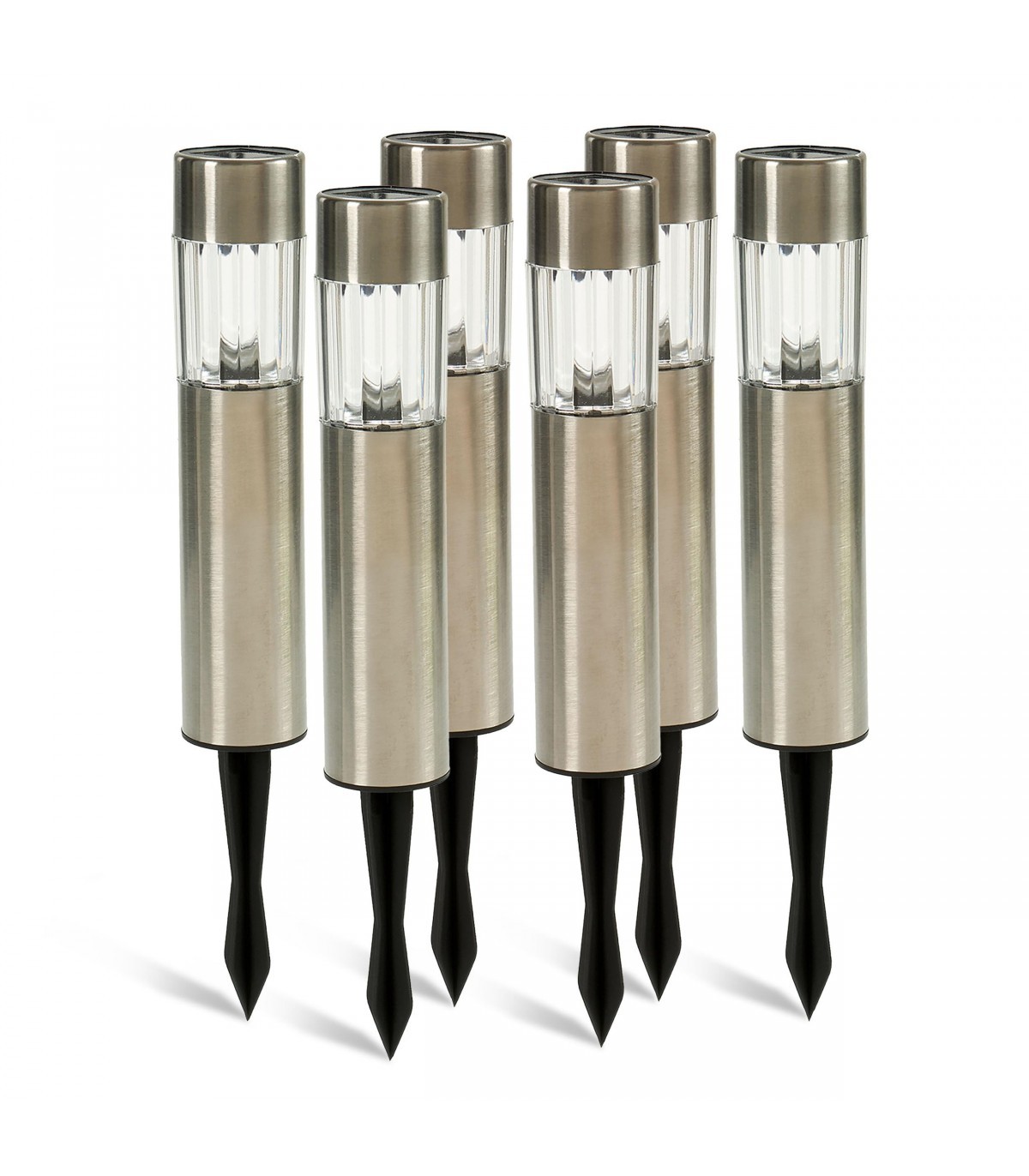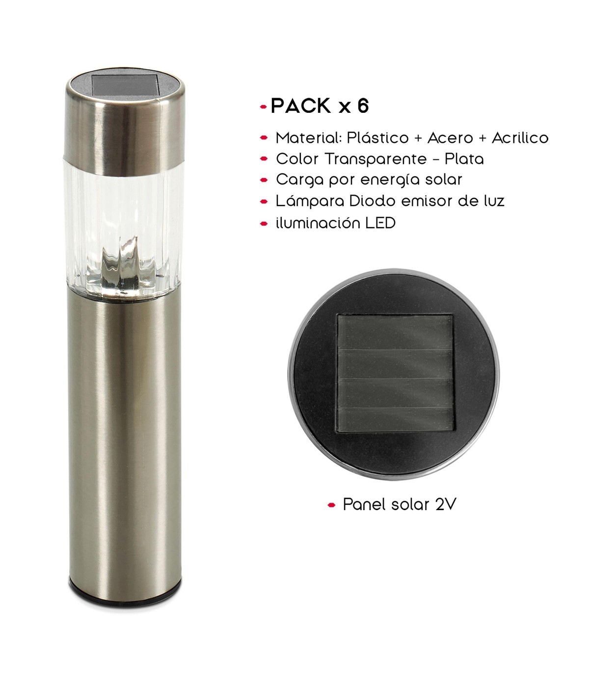 Pack de 6 Baliza Solar Exterior, 2V, LED, Impermeable, (Plata Transparente y Negro)