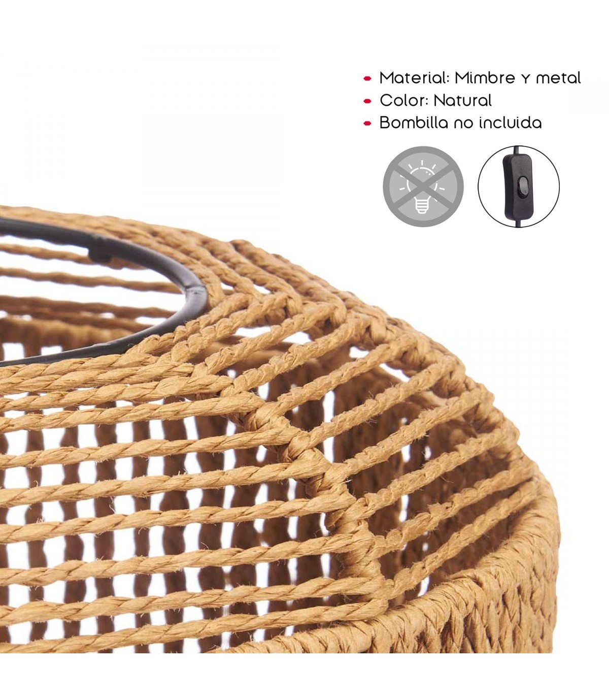 Descubre la calidez y el encanto del estilo nórdico con nuestra lámpara sobre mesa de mimbre natural y base de metal negro. Esta exquisita pieza combina la belleza del mimbre trenzado a mano con la modernidad del metal negro, creando un diseño elegante y atemporal que complementa cualquier decoración. Su color natural agrega un toque de naturalidad y frescura a cualquier espacio, mientras que su estilo minimalista aporta un aire de sencillez y sofisticación.