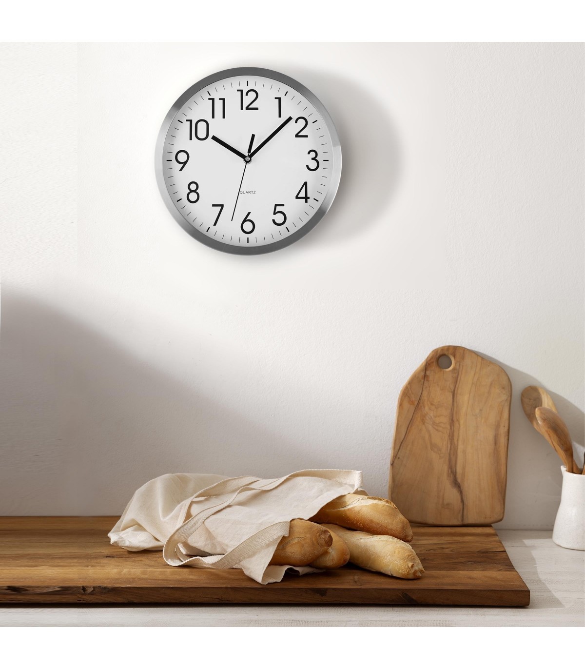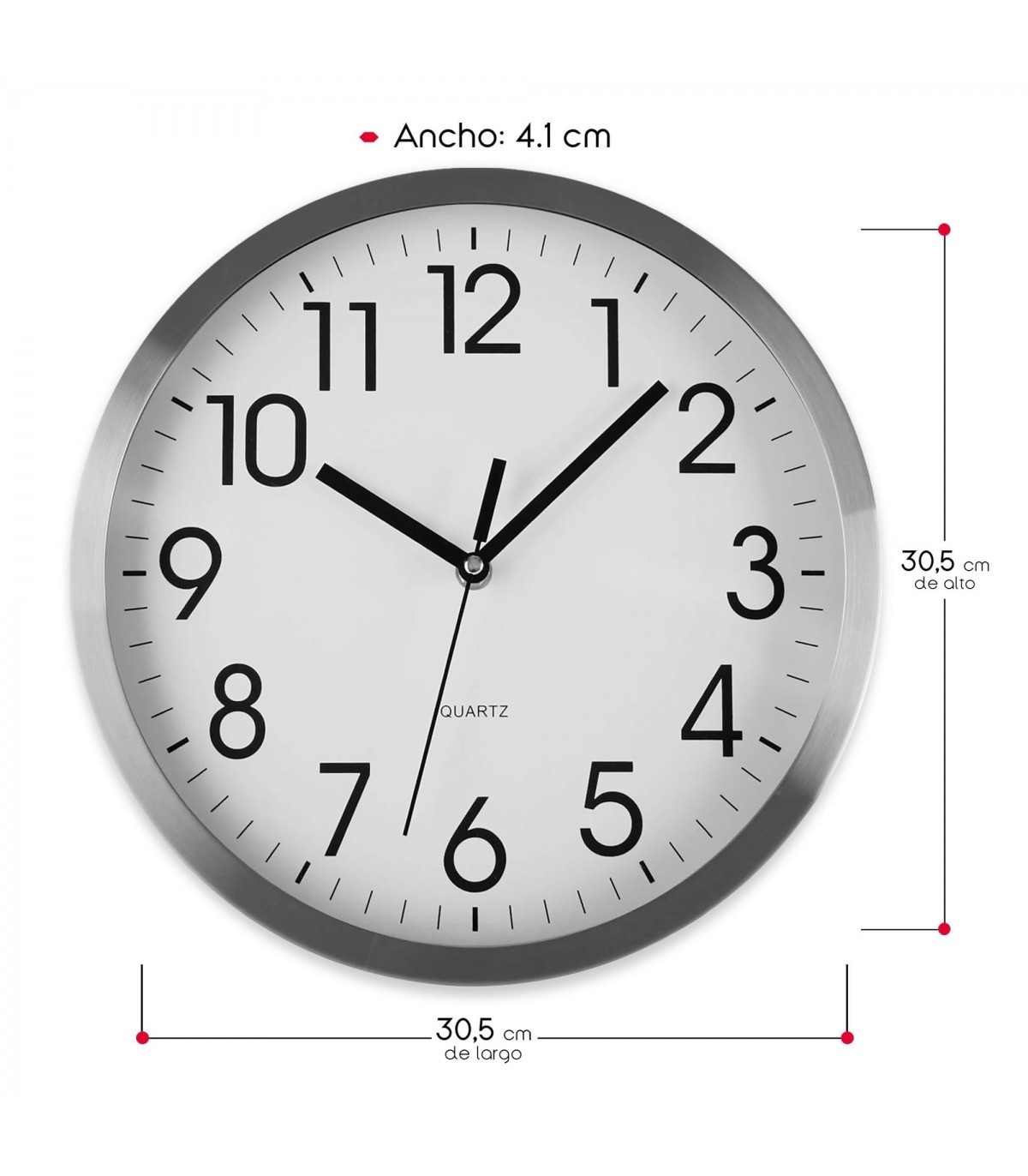 Transforma tu espacio con nuestro exclusivo reloj de pared redondo de aluminio, una fusión perfecta de estilo y funcionalidad. En tonos sofisticados de blanco y plateado, este reloj está disponible en tres tamaños diferentes: 20 cm, 25 cm y 30,5 cm, todos con un ancho uniforme de 4,1 cm. Diseñado para impresionar, presenta una estructura de aluminio que no solo garantiza durabilidad, sino que también agrega un toque moderno y elegante a tu entorno.