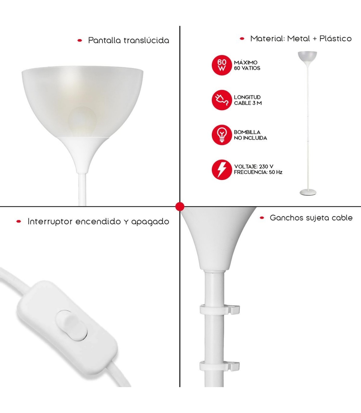 ? MEDIDAS IDEALES: Con unas dimensiones de 22 x 22 x 185 cm, esta lámpara proporciona la altura perfecta para iluminar espacios grandes y pequeños, ofreciendo una luz acogedora y funcional.