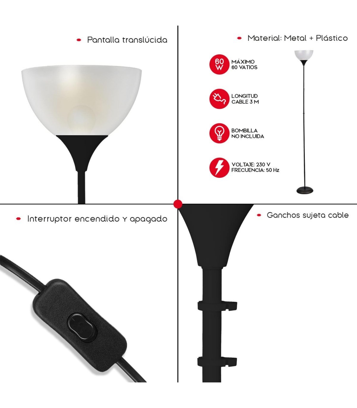 Lampara de Pie, 22x22x185 cm, Metal y Plástico (PP) (Negro)