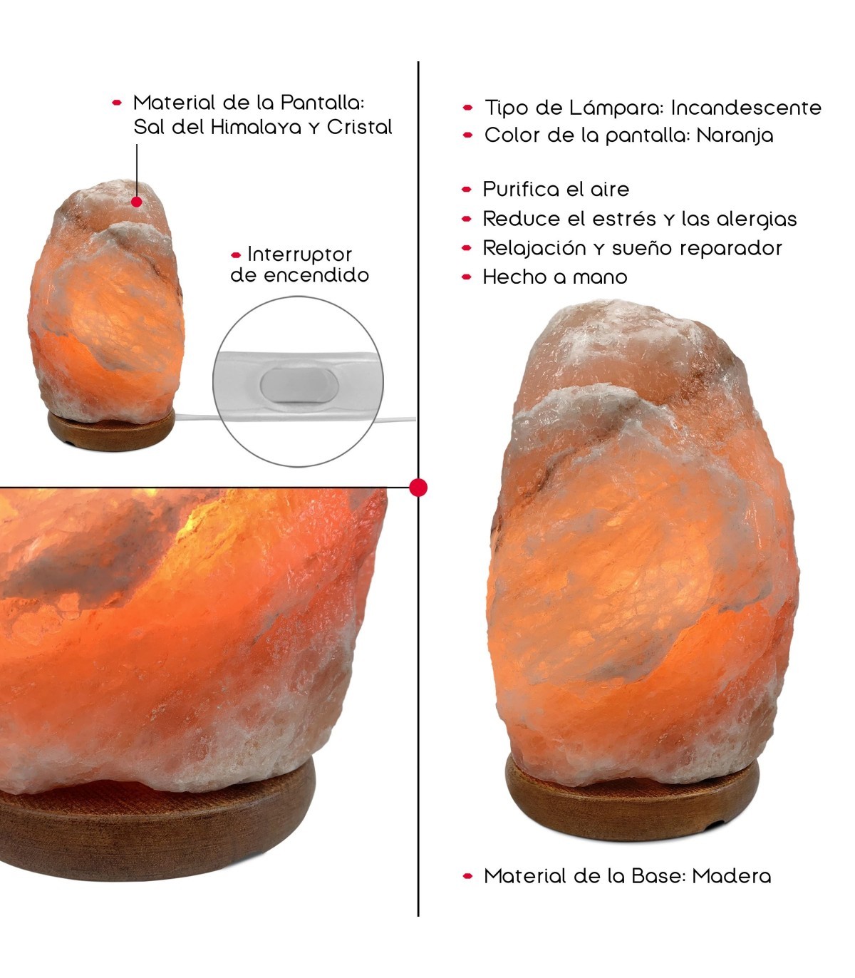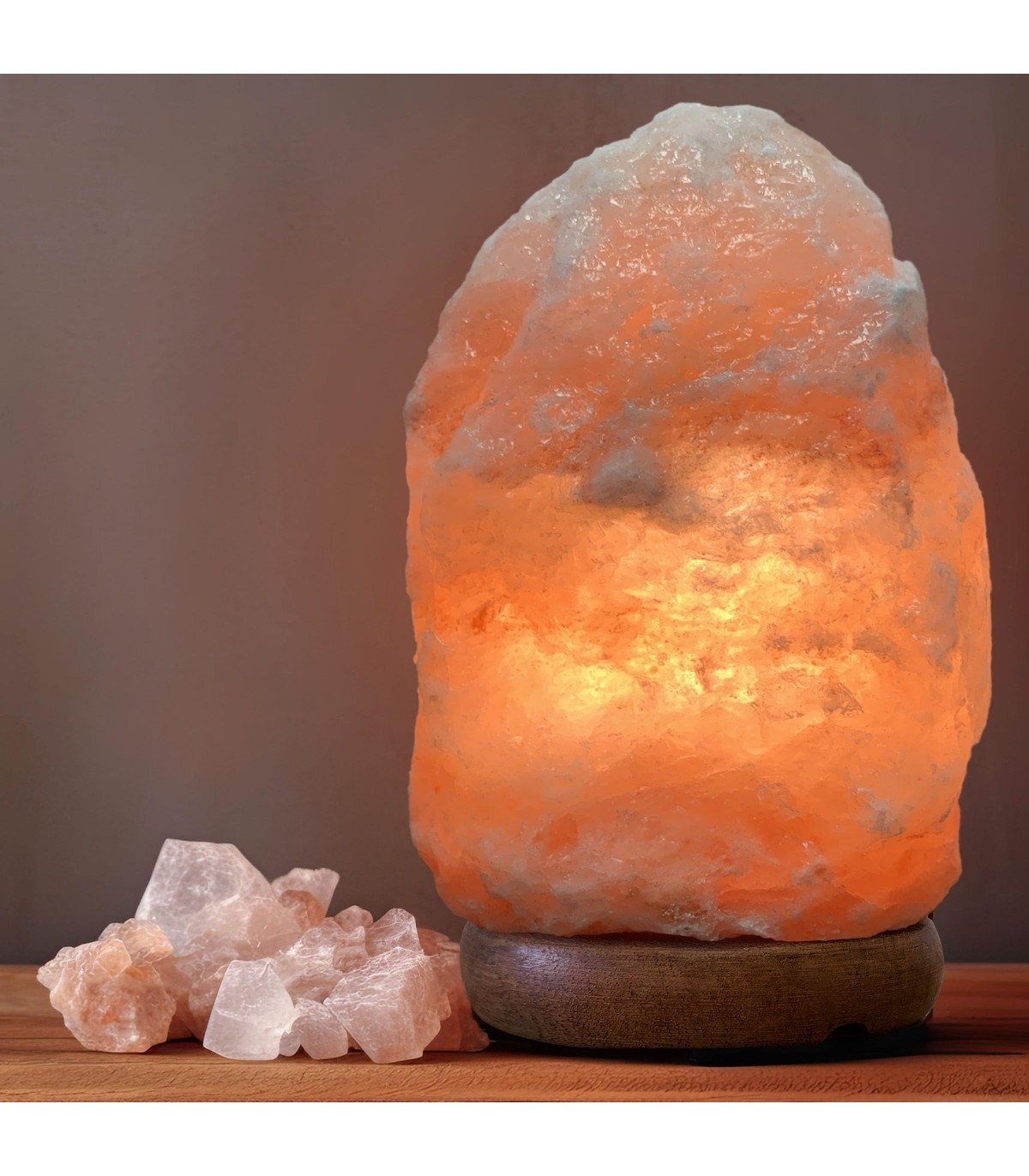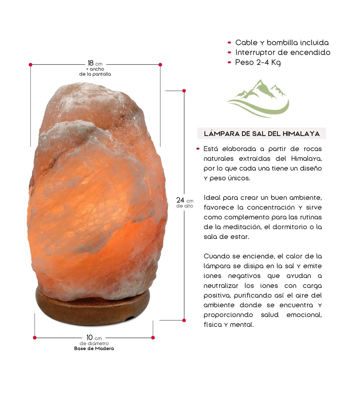 Lámpara de Sal del Himalaya, Base de Madera, Cable y Bombilla E14 Incluida (2-4 Kg)