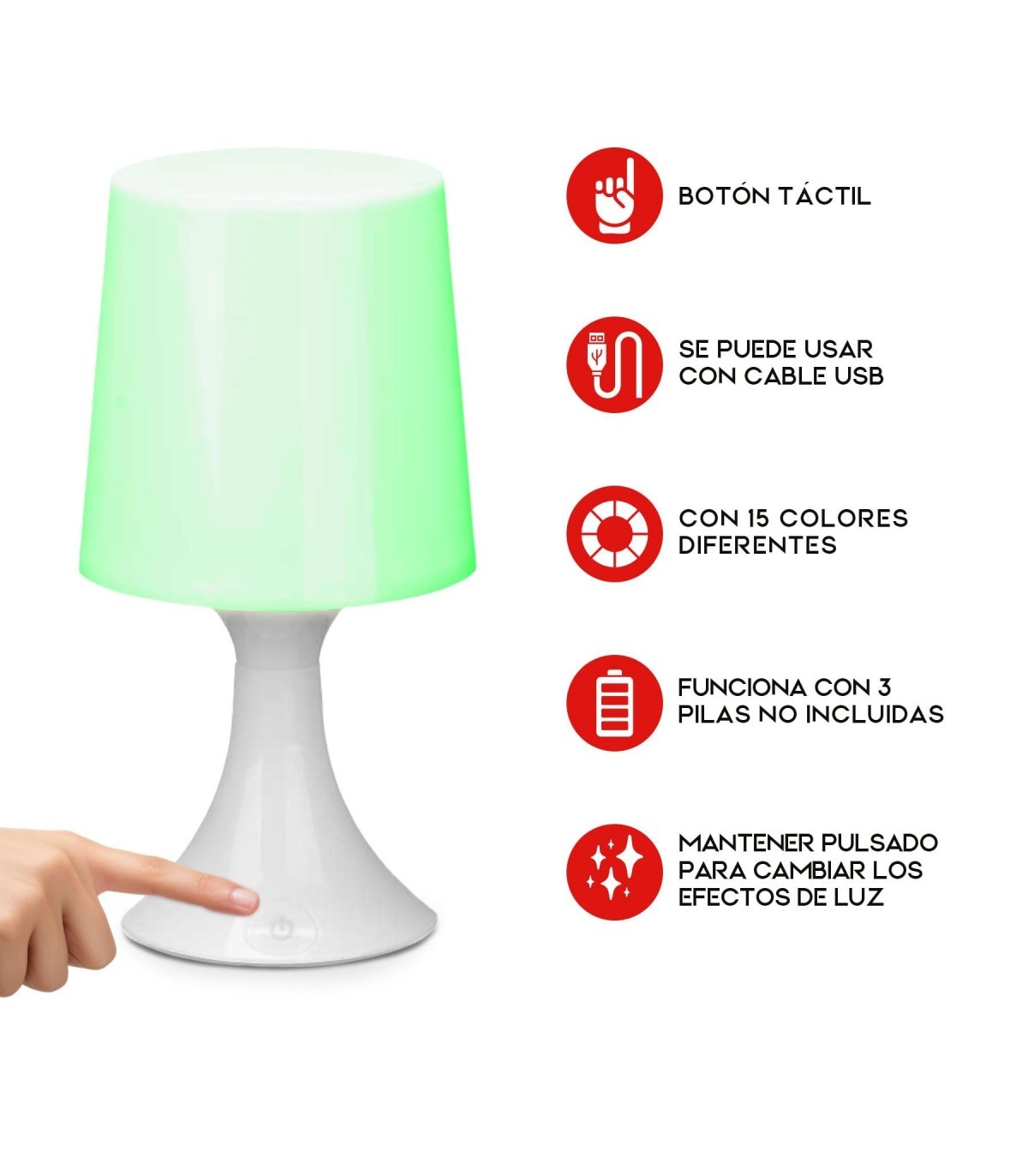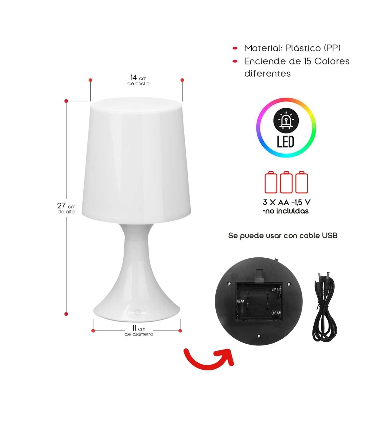 Ilumina tus espacios con estilo y versatilidad gracias a la Lámpara RGB Pie de TIENDA EURASIA. Diseñada para combinar funcionalidad y estética, esta lámpara ofrece 15 colores vibrantes y un diseño compacto que la hace perfecta para escritorio, mesita de noche o cualquier rincón de tu hogar. Disfruta de la comodidad de un botón táctil y la opción de usarla con pilas o cable USB, adaptándose a todas tus necesidades.