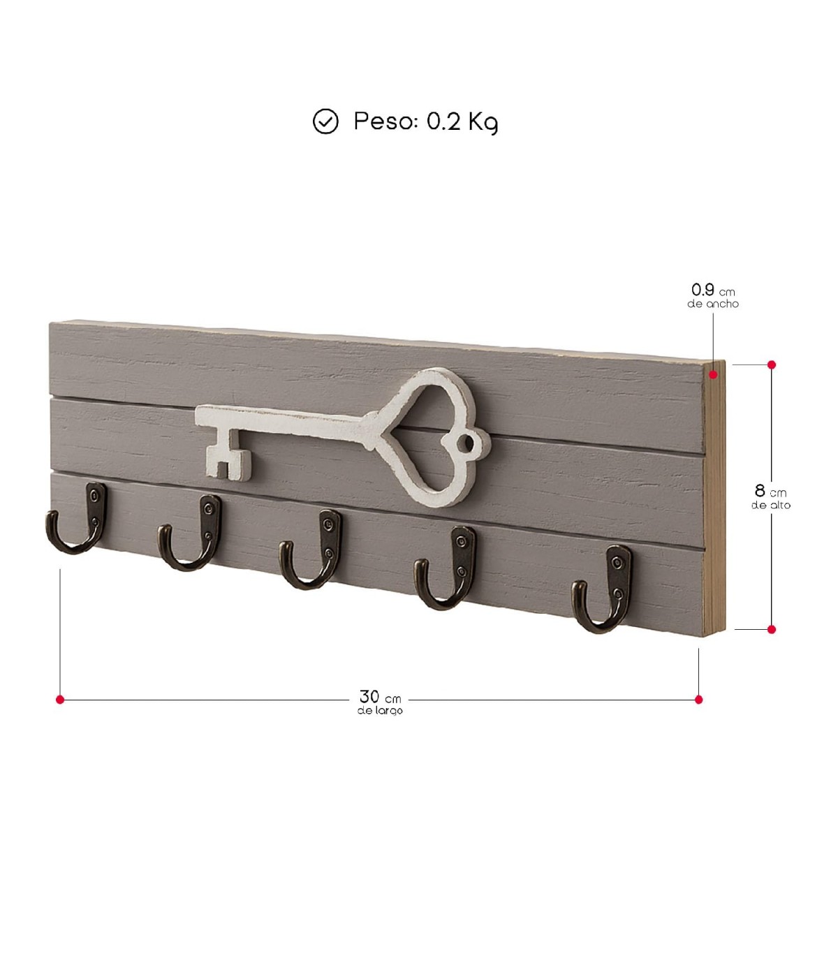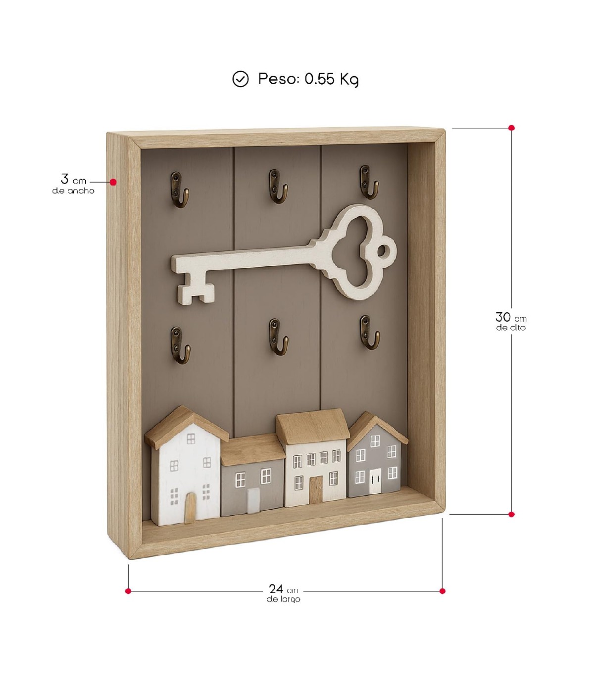 DIMENSIONES PRÁCTICAS PARA CUALQUIER ESPACIO. El colgador de casitas mide 24x30x3 cm y el colgador en forma de llave 30x8x0.9 cm, perfectos para espacios pequeños sin sacrificar capacidad.