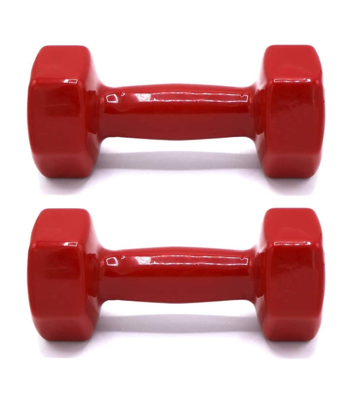TIENDA EURASIA® Pack 2 Mancuernas - Juego de Mancuernas con Recubrimiento de Vinilo - 1Kg / 6Kg - Ideal para Hacer Ejercicio en Casa (Rojo, 3Kg).