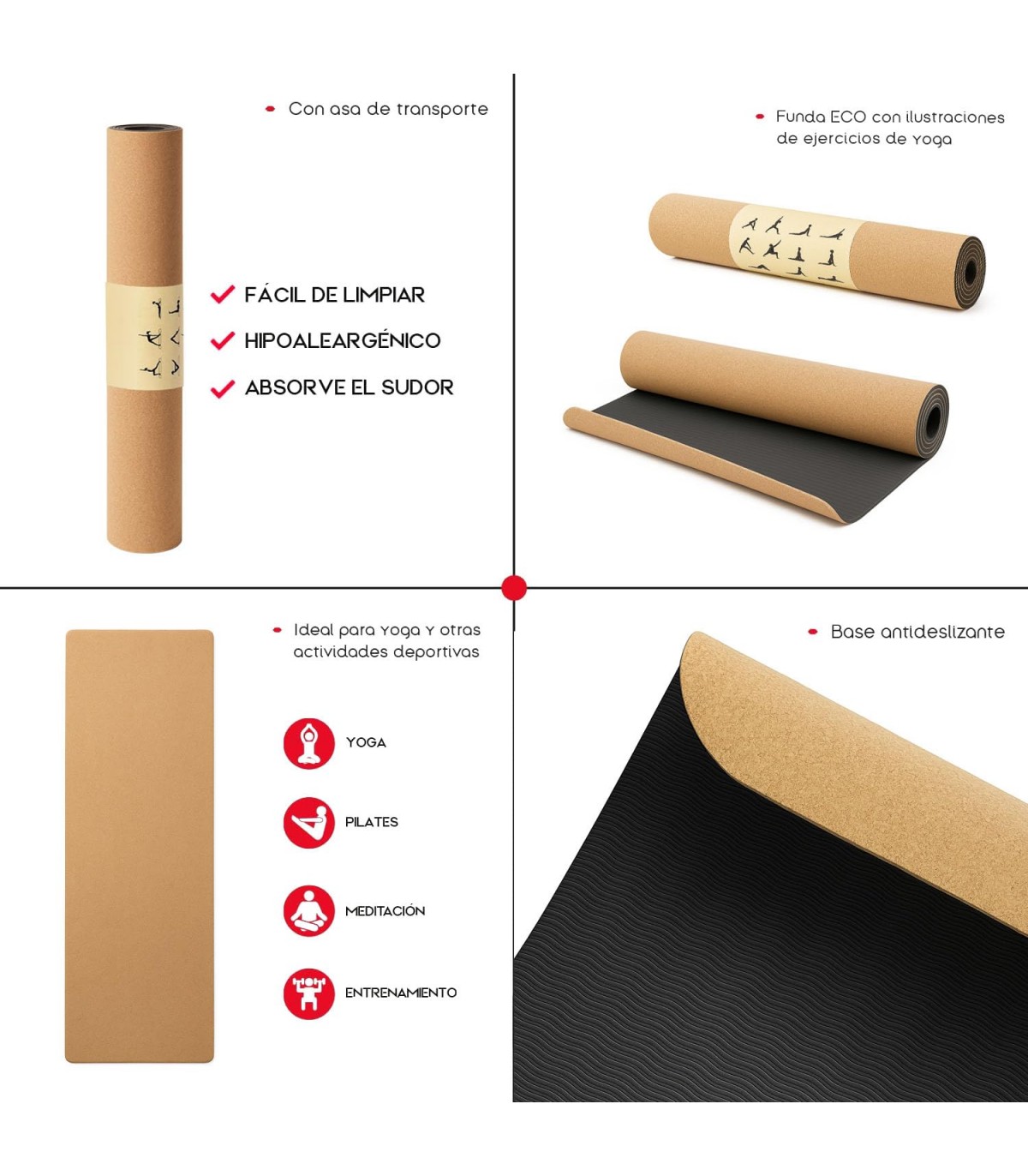 Descubre una nueva dimensión en tu práctica de yoga, fitness o pilates con la Esterilla de Yoga de Tienda Eurasia. Fabricada en resistente corcho natural con una base antideslizante, esta esterilla no solo ofrece un soporte superior, sino que también añade un toque de estilo a tu rutina diaria. Aquí están las características destacadas: