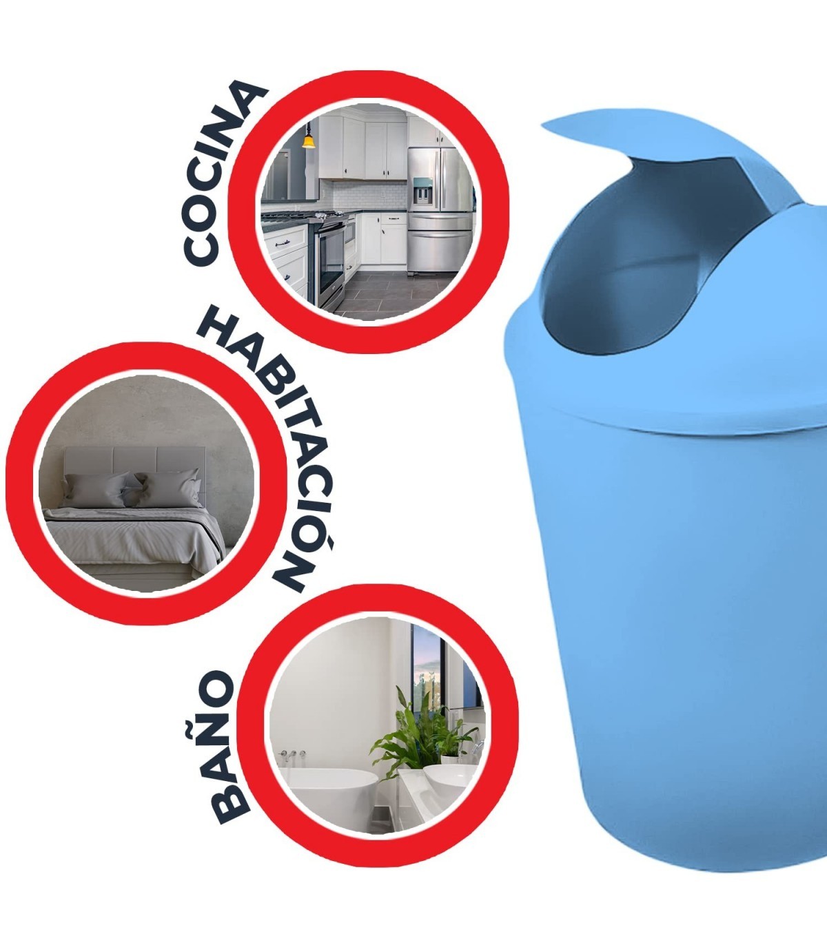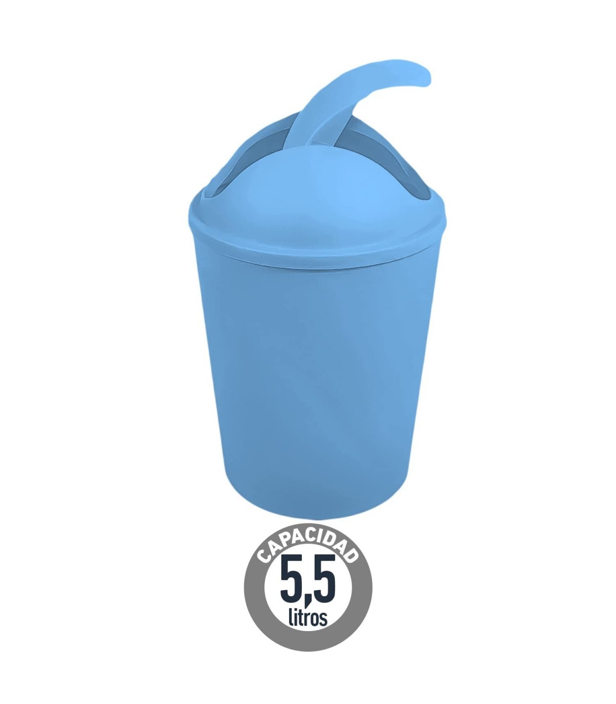 Cubo de Basura con Tapa Basculante de Plastico, 5,5 l, ø15x30 cm (Azul claro)
