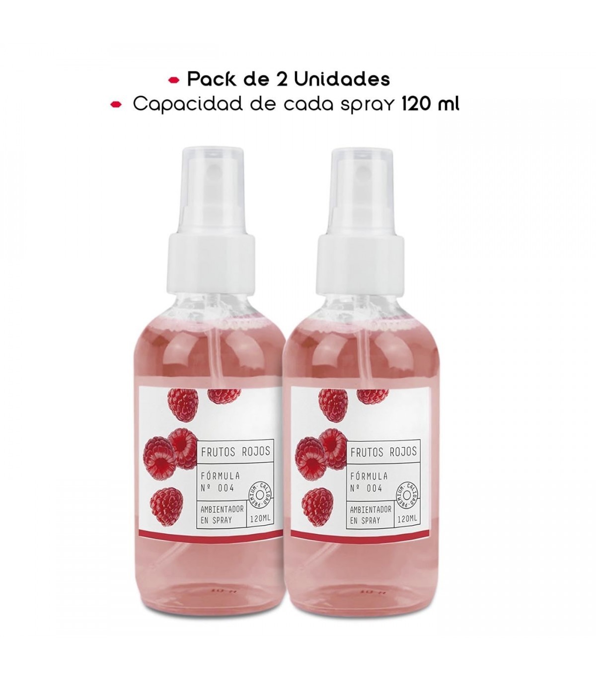 Pack 2 Ambientadores Spray, 120ml cada uno, Duradero (Frutos Rojos)