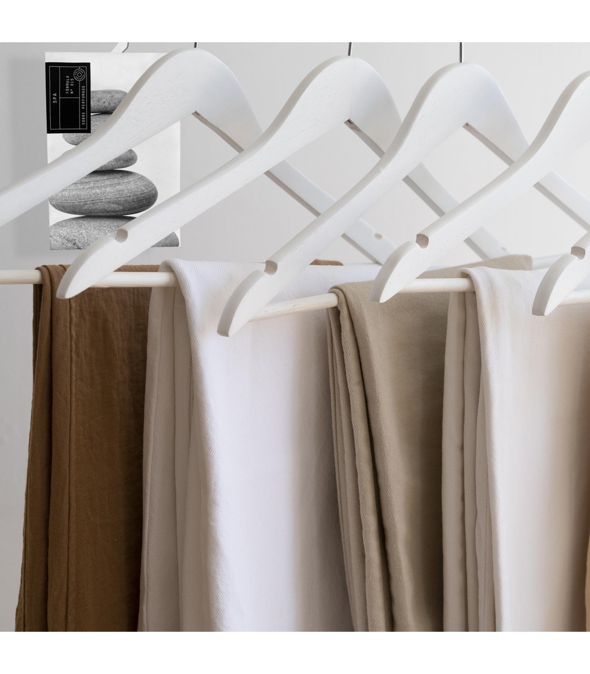 Incluye su colgador, lo que facilita la colocación en cualquier rincón de tu armario. Este diseño práctico no solo ahorra espacio, sino que también garantiza que la fragancia se distribuya de manera uniforme entre tus prendas, creando un ambiente fresco y acogedor cada vez que abres la puerta.