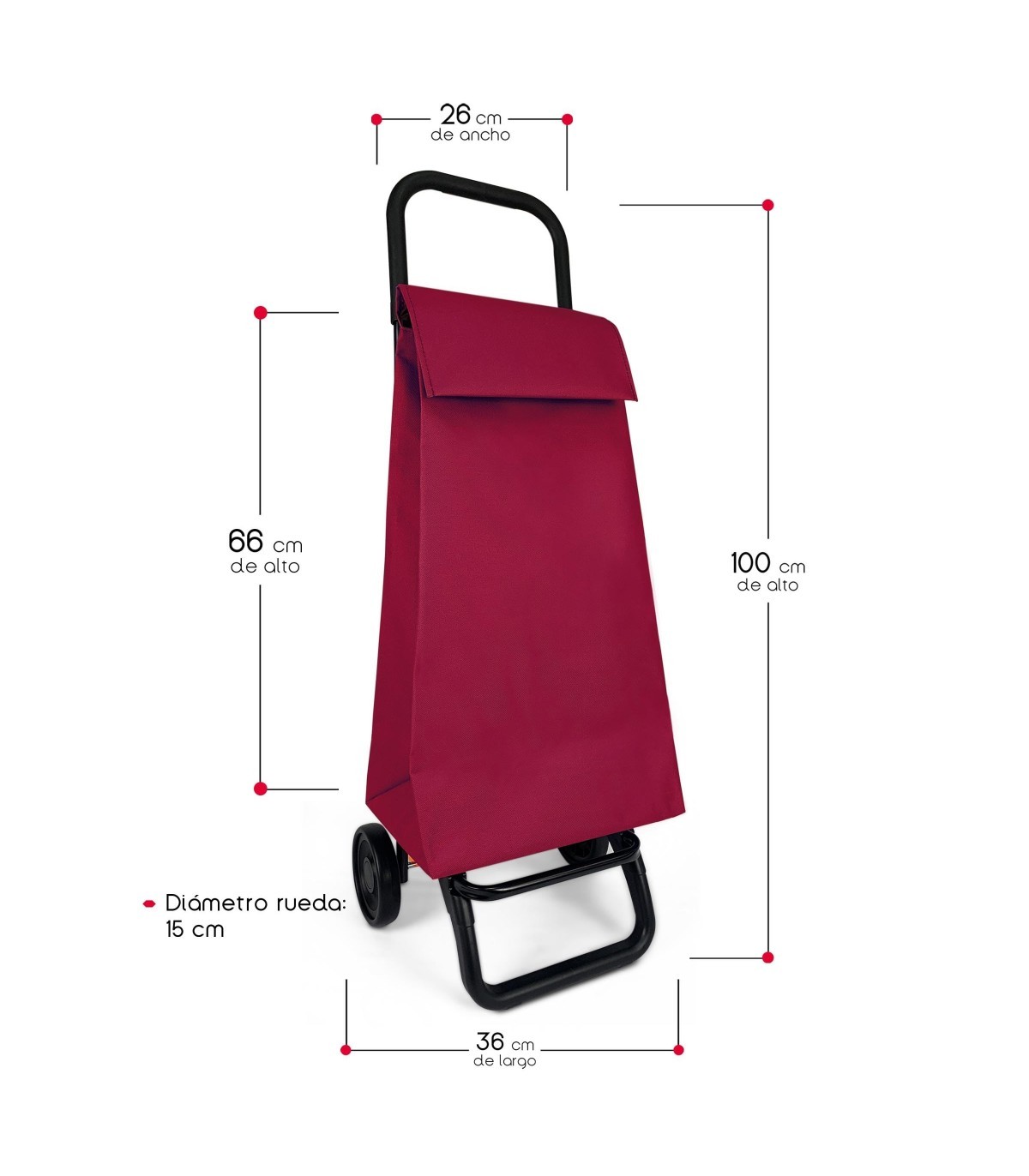 Carro de Compra, Plegable, Poliéster, Cierre Ajustable, 22x36x100 cm, 55L (Rojo)